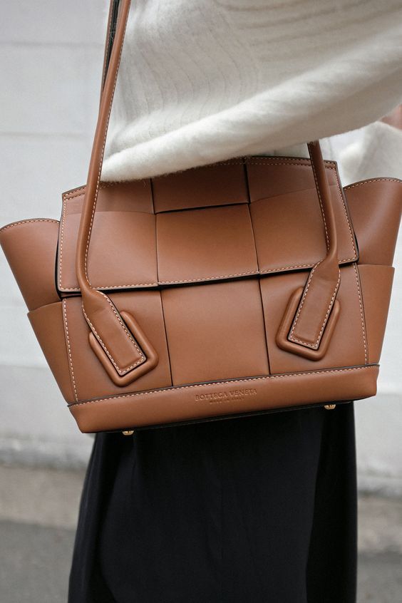 아르코백에 관한 비하인드 스토리가 있는데 원래는 인트레치아토가 아닌 왼쪽 사진 같이 플랫한 가죽 형태만 제작이 됐었다고 한다. 그런데 다니엘 리가 디자인 품평 시간에 왼쪽 형태의 아르코백 보고는 즉석에서 가위를 들고 가죽 가방을 잘라 가죽을 꿰어 인트레치아토(위빙) 형태로 만들어 보여줬고 그렇게 탄생한 게 인트레치아토 아르코 백이다(오른쪽 사진). 이 가방 안을 보면 가죽의 결과 마감된 부분이 무심하면서도 섬세하게 마무리되었는데 이런 디테일을 통해 가죽 브랜드 보테가베네타의 가죽 세공 스킬을 마구 느낄 수 있다.