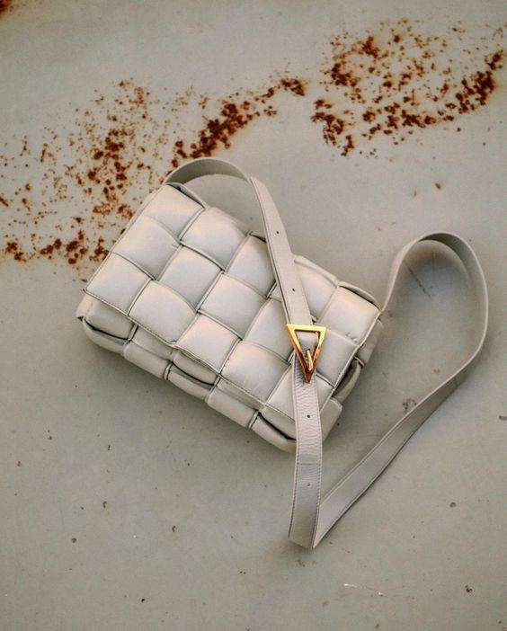 그리고 기존 카세트백 형태를 패딩처럼 도톰하게 만들어 19F/W에서 처음 나왔던 패디드 카세트백(Padded Cassette Bag) 가운데 사진 속 회색빛 도는 플라스터 컬러와 하늘색 패디드 카세트백은 인턴 하면서 봤던 제품들 중 가장 예쁘다 생각했던 가방이다. 패딩 부분이 정말 말랑 도톰해서 촉감도 좋고, 단순하지만 그 어디에서도 볼 수 없었던 삼각 모양의 버클은 이 가방의 화룡점정이다. 내 원픽이다.