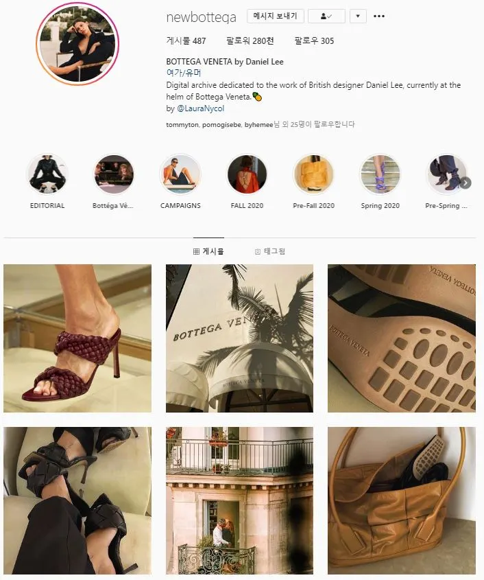 마지막으로 이 글을 읽고 난 뒤 보테가 베네타에 더욱 관심이 생겼다면 브랜드 공식 계정인 @bottegaveneta 인스타도 좋지만 다니엘 리의 뉴 보테가 베네타의 예쁜 아웃핏들은 모아놓는 계정 @newbottega 추가적으로 팔로우하는 걸 추천드린다.