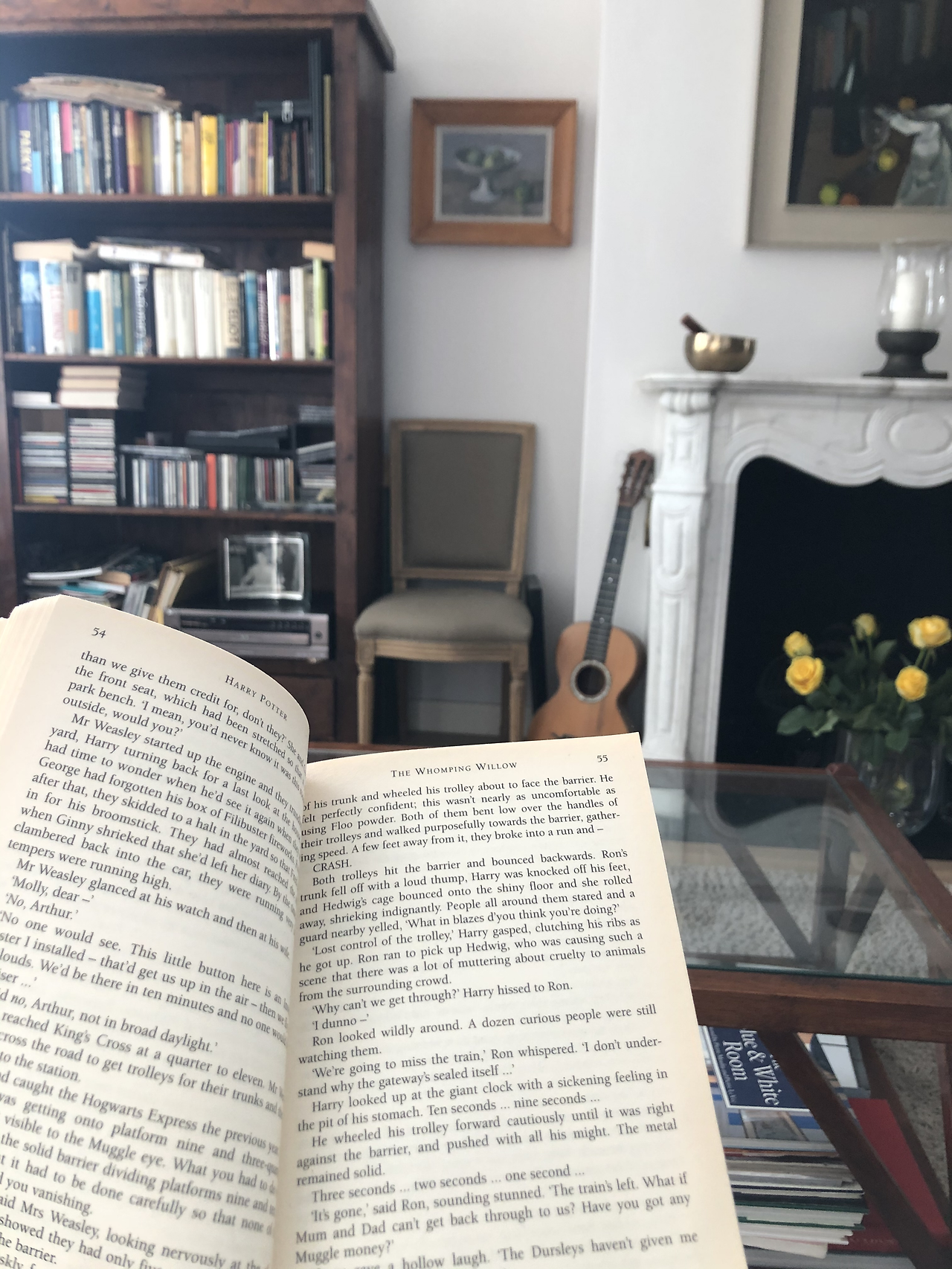 방 안에만 있기 너무 심심할 땐 굉장히 영국스러운 거실에 나와 한국에서 꾸역꾸역 들고 온 해리포터도 읽어줬다. 난 해리포터 영화는 엄청 좋아하는데 책은 제대로 다 안 읽어서 이번 기회에 영문판으로 다 읽어보자! 가 내 올해 초(2021년) 처음 세운 목표였다. 달마다 시리즈 하나씩을 끝내는 게 목표였고, 그래서 1월의 마지막 날 아슬아슬하게 마법사의 돌을 다 읽어냈고, 2월에는 그 다음 시리즈인 비밀의 방을 꺼냈는데,,,,,,,,,,,,,