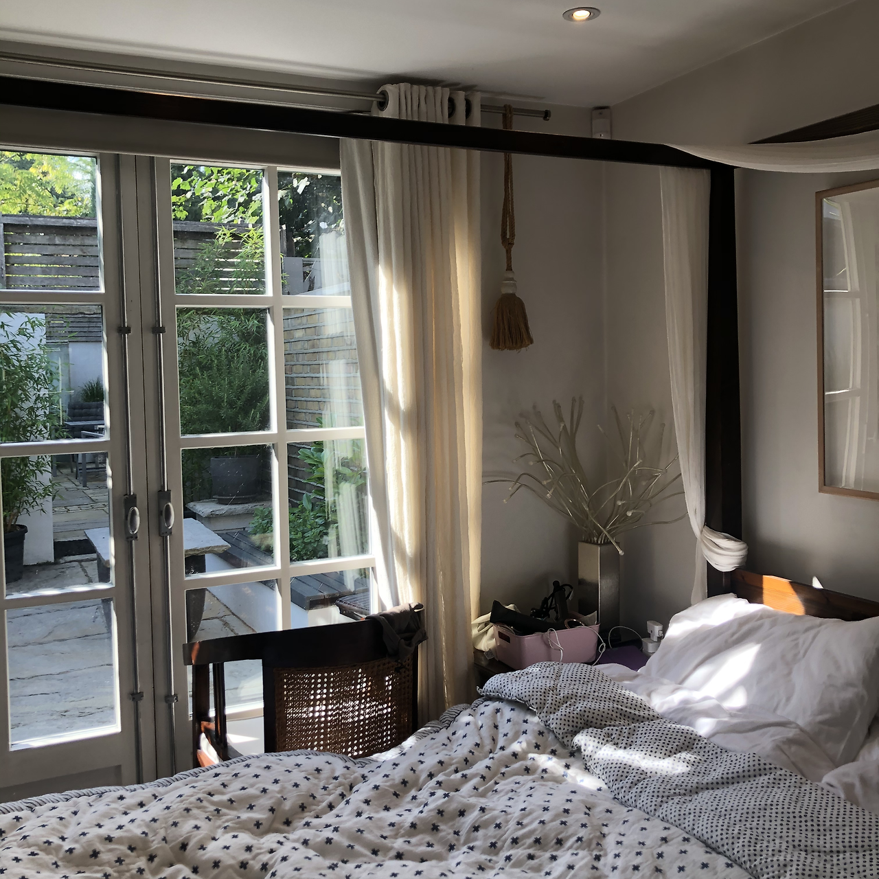 런던 히드로 공항에서 학교에서 마련해준 픽업 차량을 타고 에어비앤비에 체크인하자마자 호스트 할머니가 마스크를 벗으라고 해서 살짝 당황스러웠다. 에어비앤비 호스트 할머니는 79세의 독일 브레멘 출신 이민자인데 십몇 년 전에 영국인 남편과 사별하고 혼자 넓은 집에서 살며 남는 방들을 에어비앤비로 대여하며 살고 있다. 할머니 집엔 방 5개, 화장실 4개가 있는데 또 다른 방 5개가 있는 집 하나가 이 집과 연결되어있다. 사람마다 숙소나 집을 고르는 중요 포인트가 다 다른데 나 같은 경우는 테라스와 뷰에 집착하는 편이다. 그래서 이 호스트가 에어비앤비로 운영하고 있는 수많은 방 중에 방과 바로 연결된 테라스가 있는 이 방을 선택했다.