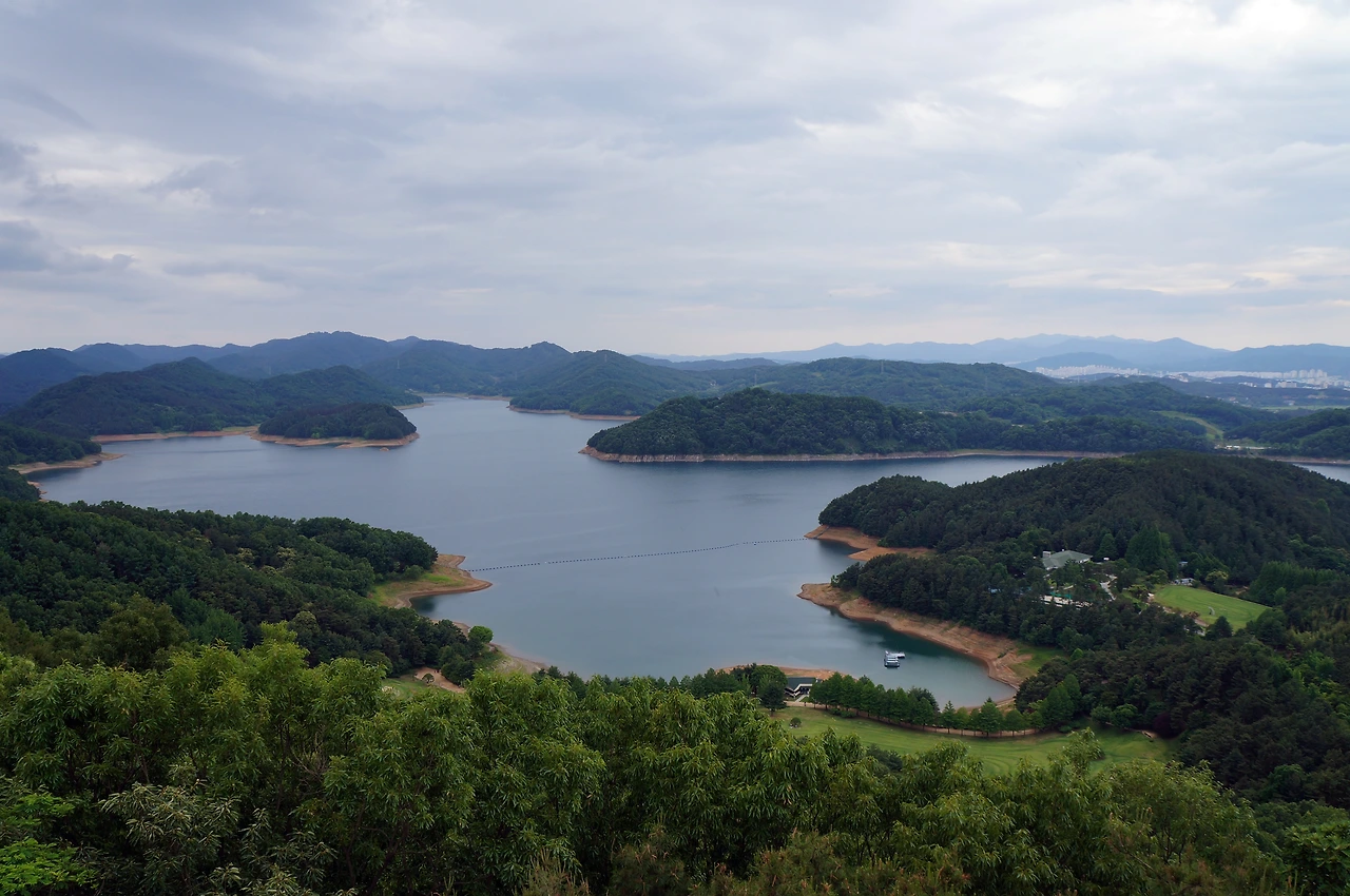 엄마와 나는 출렁다리를 지나 전망대가 보이는 길을 선택한다. 밑에서 보았을 때에는 꼭대기까지 가파른 길이어서 선뜻 엄두가 나지 않았는데, 대청호에서 불어오는 시원한 바람을 맞으며 계단을 오르니 생각보다 걷기가 수월하다. 엄마와 나는 이 길을 걸으면서 엉겅퀴, 오가피, 방풍나물, 두릅과 같은 식물에 대해 얘기하고, 사슴풍뎅이 두 마리가 서로 싸우는 모습을 보고 무슨 일인지 추측하기도 한다. 어떤 나무에는 QR 코드가 걸려 있어 나무의 특징을 검색할 수 있다. 작은 글씨가 보이지 않는 엄마에겐 무용지물이다. 그렇다고 기죽을 엄마가 아니다. 오히려 현대 기기를 초월하는 지식과 경험을 바탕으로 생생하게 설명해 주신다. 산책길은 식물원 같기도 하고, 생태공원 같기도 하여 엄마에게는 한없는 놀이공간이 되었다. 전망대에 오르면 청남대와 대청호의 모습을 한눈에 볼 수 있다. 남해 다도해 축소판 같은 느낌이다. 구불구불 호수를 둘러싼 내륙의 모습이 아름답다.