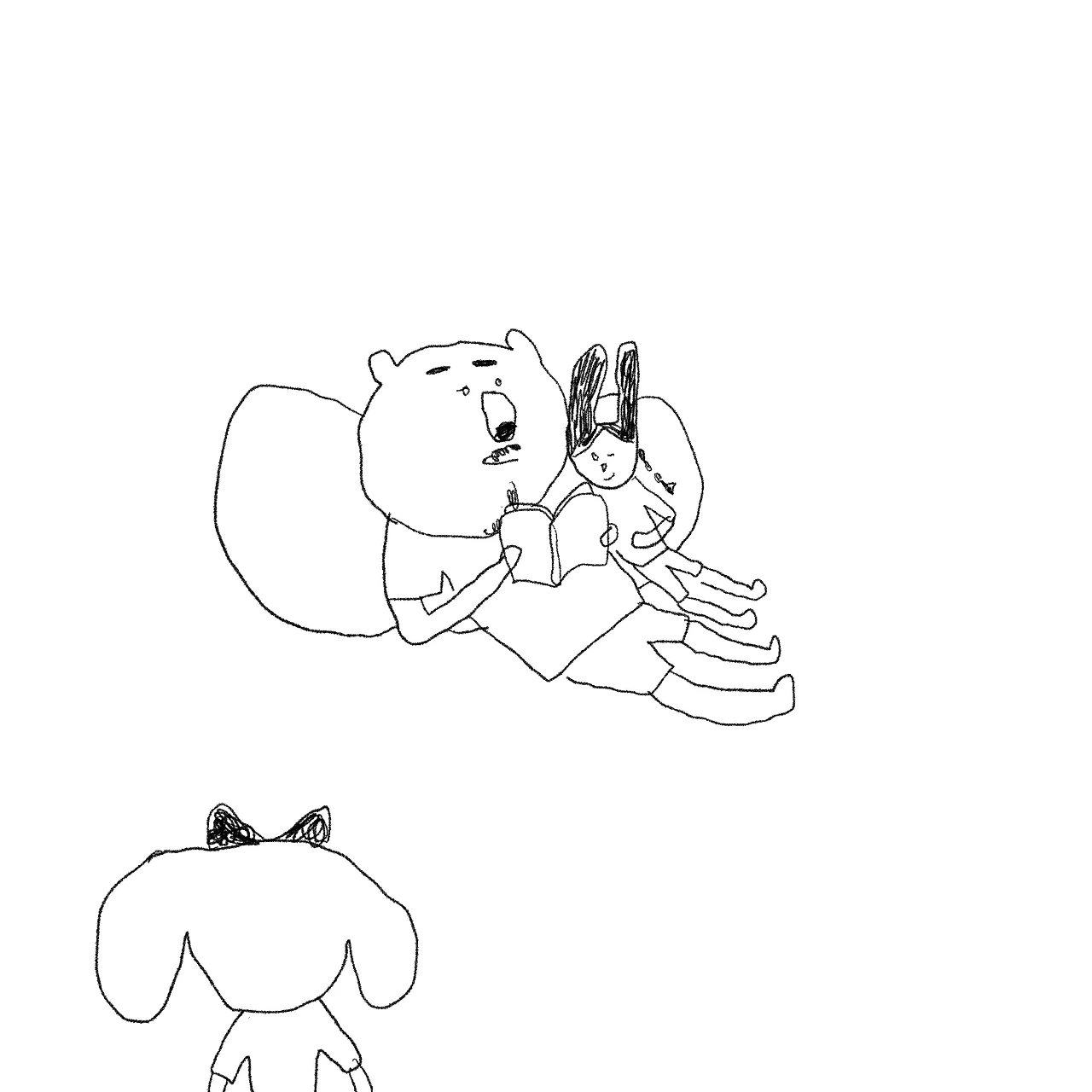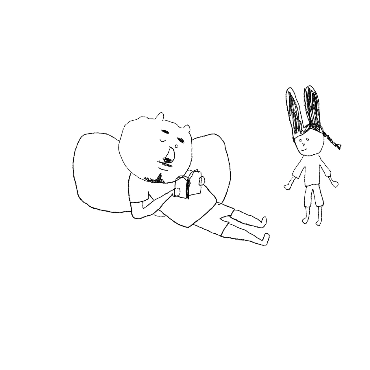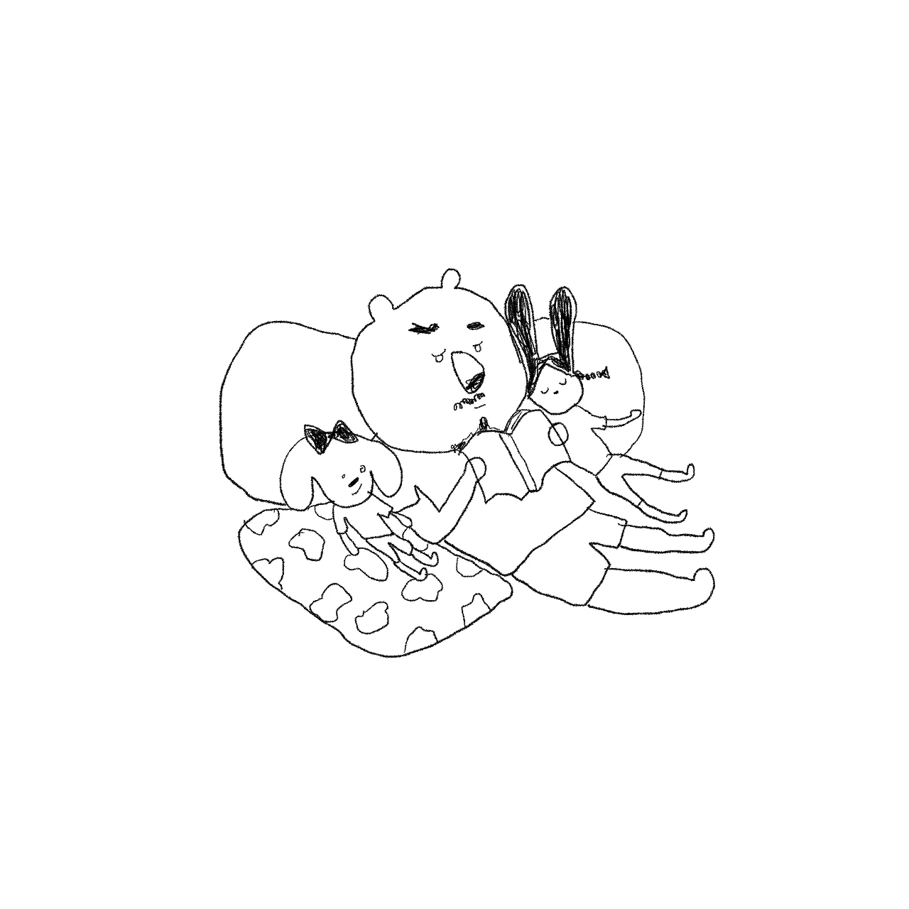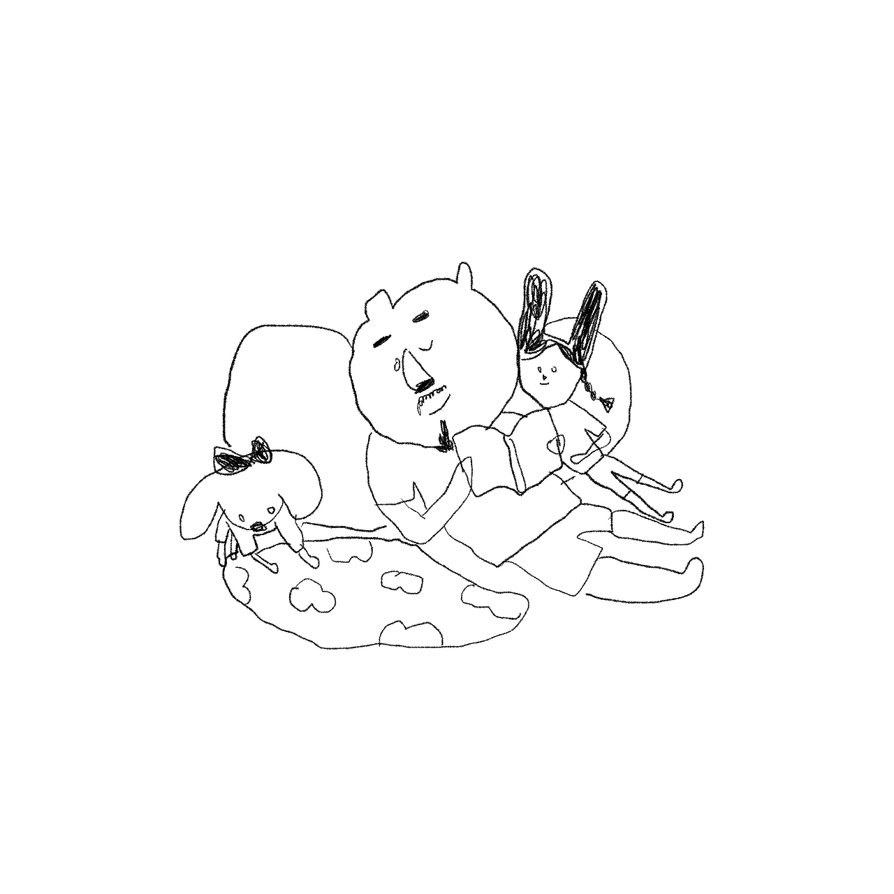 책을 보며 졸고있는 아빠품에 슬며시 다가오는 두딸.