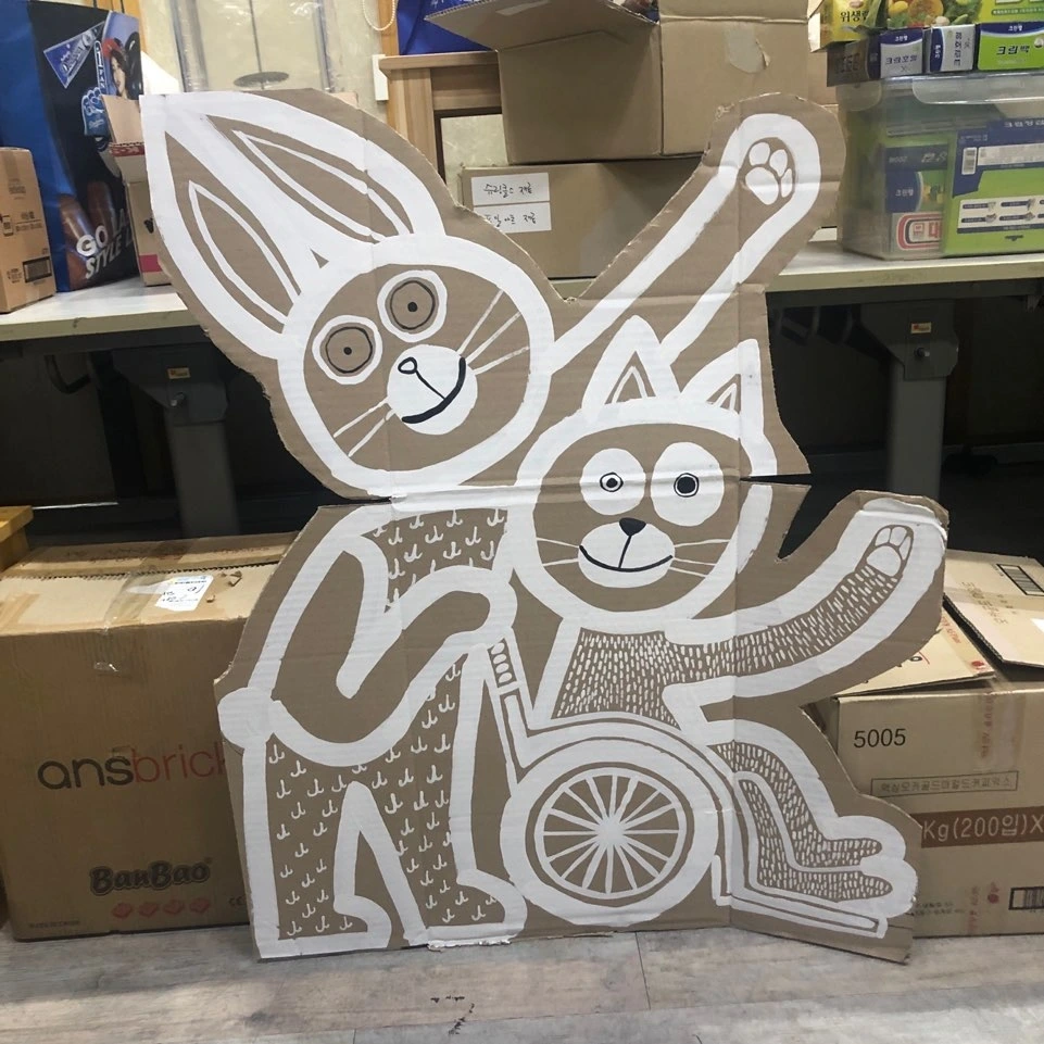 그리고 환경과 비용절감을 위해 박스지를 활용한 재활용작업을 한다.