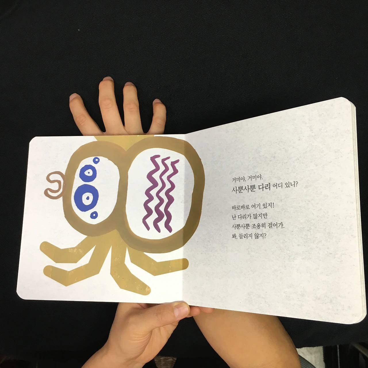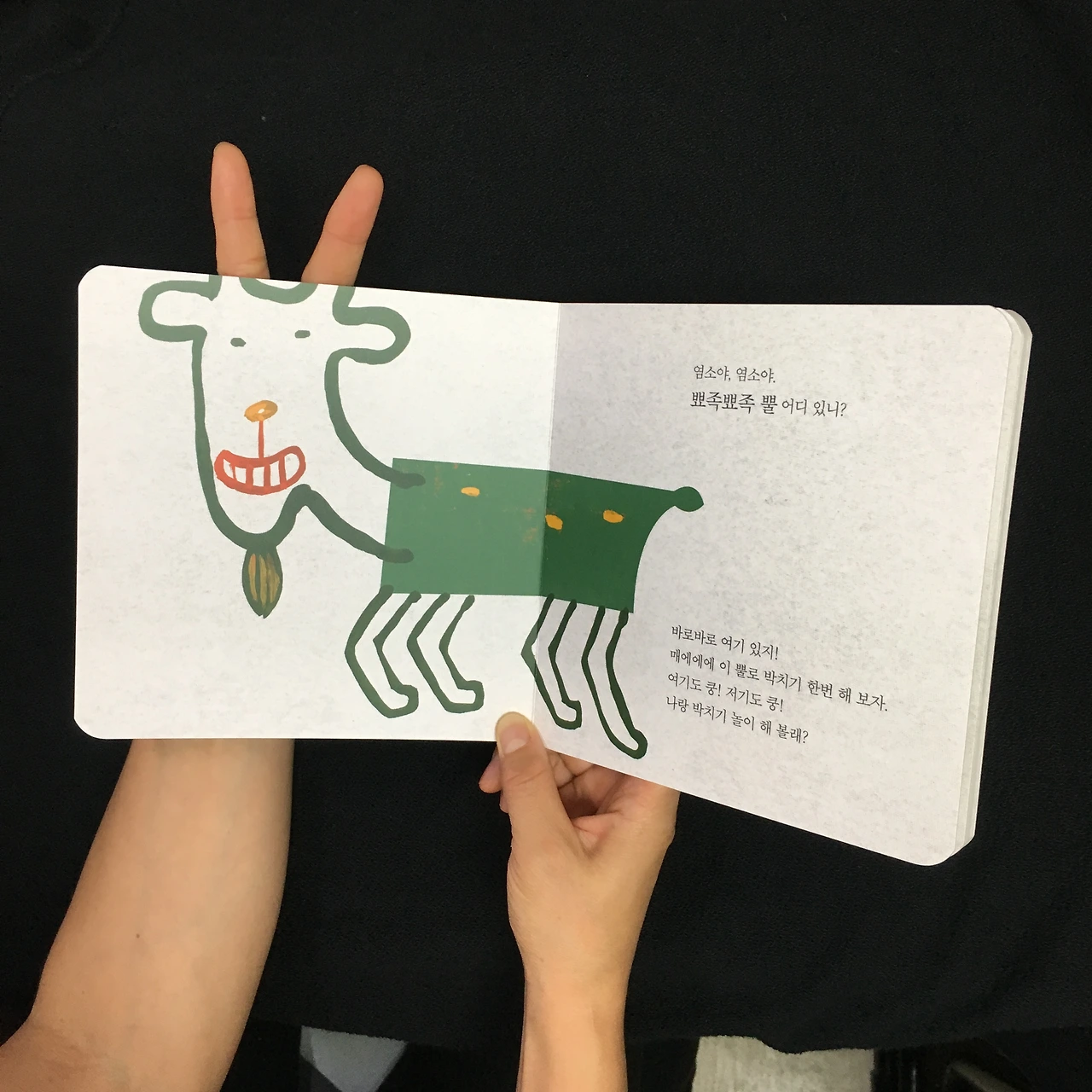 그림책작가인 제가 처음 더미북 형태의 손놀이 그림책을 만들어, 아이들은 어떻게 받아들일지 우리 아이들과 동네 아이들에게 1년의 임상실험을 거치고 3년의 수정과정을 통해 만들어 졌어요.ㅜㅜ