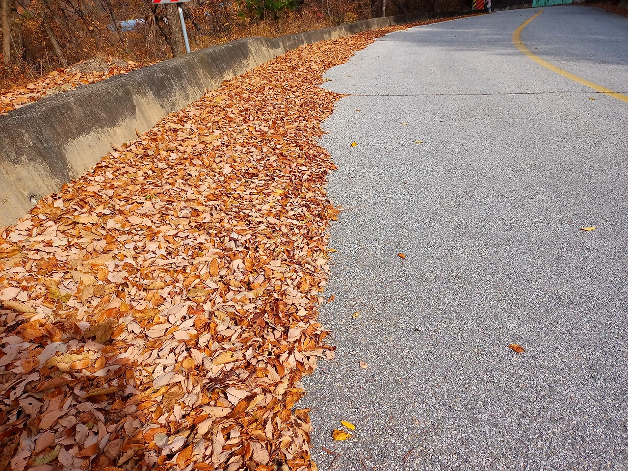 가을볕이 바삭바삭 숲을 말린다. 바삭바삭 마른 숲이 길에 내려앉는다. 길을 걸으면 바삭바삭 소리가 난다. 길이 아닌, 숲을 걷는 느낌이다. 숲을 가르는 바람이 이따금 불어온다. 마른 잎들은 순순히 길가로 물러난다. 누가 이렇게 엽렵히 길을 쓸었나, 날마다 하게 되는 싱거운 생각. 길은 말끔해지고 길 옆 작은 생명들은 겨울 채비가 든든해진다. 길가 풀덤불이 매해 풍성해지는 건 낙엽이불 덕분이다. 영양도 풍부한 낙엽이불 속에서 겨울잠에 드는 곤충과 애벌레, 풀씨와 뿌리들.