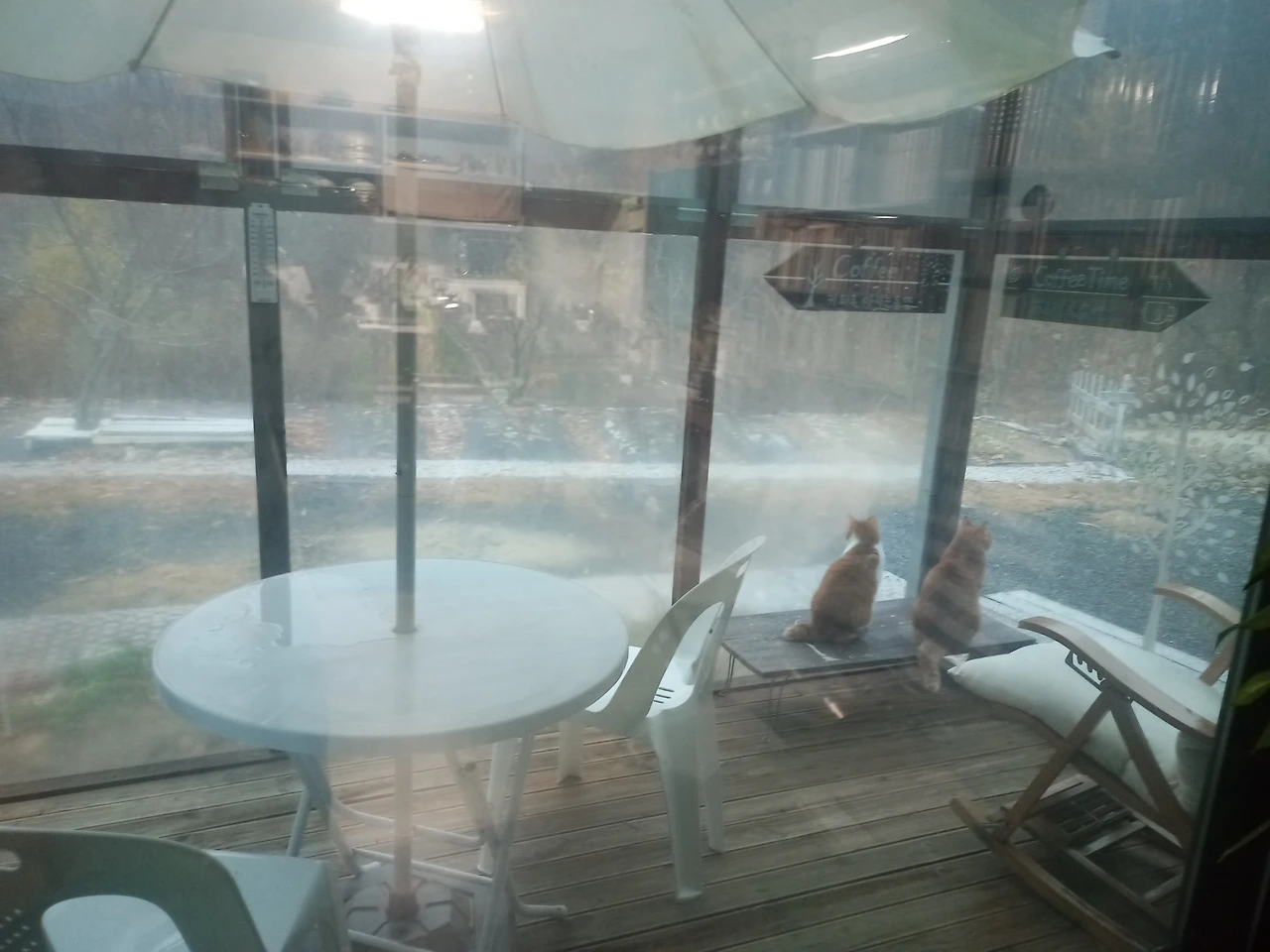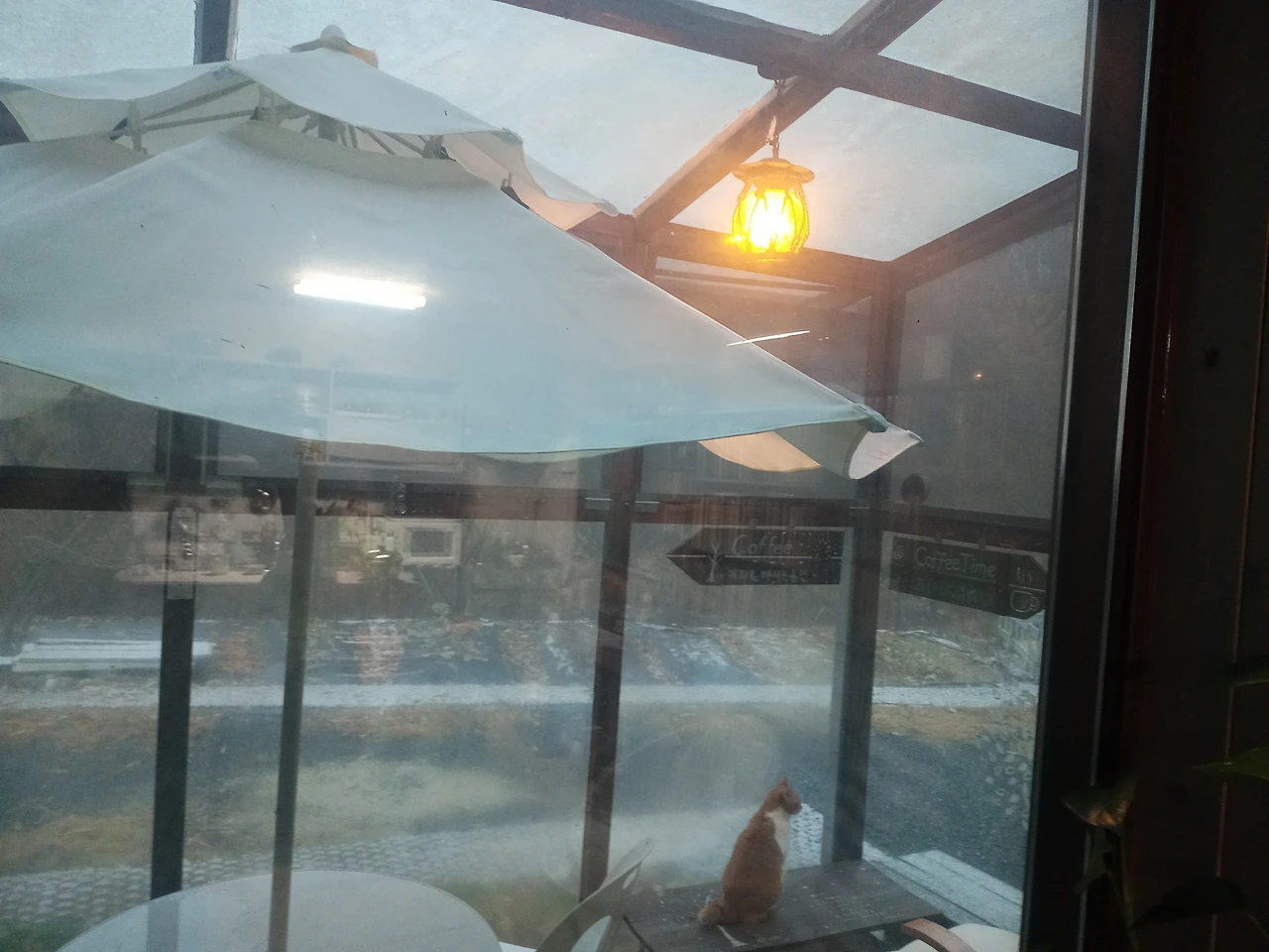 날이 밝아오는 아침, 커튼을 걷었더니 눈이 내리고 있다. 안개인가 싶게, 입자가 고운 가늘가늘한 눈발. 올 겨울 첫눈. 마당고양이 율무와 보리가 눈 구경을 하고 있었다. 호박색 테라스 등을 켜놓고 나도 눈 구경. 얼마나 내릴까...