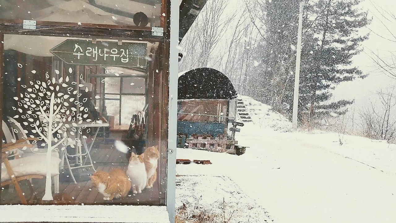 눈이 내릴 때마다 신기하게 구경하는 고양이들