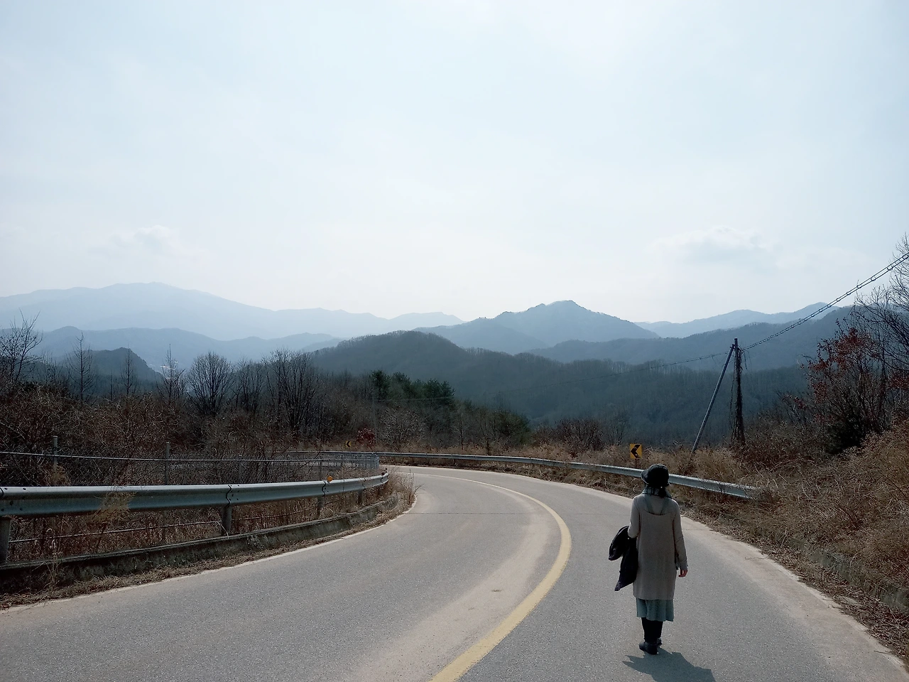 세상이 바뀌고도 세상은 여전하다. 기온은 올라 불현듯 봄날이 되어버렸다. 동생과 자주 걷고 있다. 아침마다 아랫동네까지 한 시간 가량 다녀오는 산책은 늘 하던 것이고, 이젠 오후에도 좀 먼 곳까지 걸어갔다 온다. 오후 산책은 주로 지대가 높은 고갯길 도로를 향한다. 두어 시간 걷는 동안 차량을 채 열 대도 만나지 않는 길이다. 고갯마루에 다다르면 양쪽으로 갈라져 각각 다른 마을로 이어진다. 두 길 중 달빛마을로 가는 완만한 내리막길이 대체로 우리의 선택인데, 때로 급경사로 구불구불 가파르게 내려가 국도변에 닿는 맞은편 길로 접어들기도 한다.