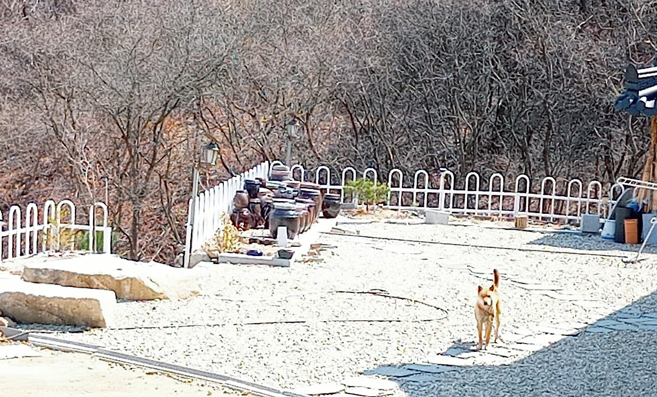 지대가 높은 산골인데도 어디에선가는 공사가 진행되고 있다. 거대 곤충 모양새를 한, 땅 파는 기계가 굉음을 울리며 기어 다닌다. 한참 그 지역을 멀리했다가 문득 가보면 생흙을 다진 새로운 길이 나 있기도 했다. 공사는 끝나지 않아 여전히 기계가 기어 다니고, 커다란 돌덩이들은 축대가 되어 쌓여 있었다. 골짜기를 면해 편평히 다진 공간엔 그새 번듯한 건물 한 채가 새로 들어섰다. 납작한 회색 돌로 이 층 높이 벽을 세우고 검은 기와로 지붕을 얹었는데, 껑충한 모양새가 관공서 같기도 하고, 국도변 휴게소 같기도 했다. 절인가도 싶지만 절 치고는 속세스러웠다. 아직 손질 중으로 보이는 마당엔 너럭바위가 놓였는데, 그 위에 갈색 진돗개 한 마리가 앉아 있었다. 주춤 걸음이 멈춰졌다. 언제부터 우리를 주시하고 있었는지 알 수 없지만 쉽게 동요하지 않는 점잖은 녀석이었다. 대문 없이 트인 마당 앞을 과연 지나갈 수 있을까. 동생도 나도 담력이라곤 도통 없다. 산골길을 걷다 외딴집에서 강아지라도 캉캉 짖으며 달려 나오면 가슴이 뛴다. 길을 되돌아서기도 한다. 잠시 팽팽히 시선이 오가는 중 녀석은 몸을 일으켜 컹컹 묵직하게 짖기 시작했다.