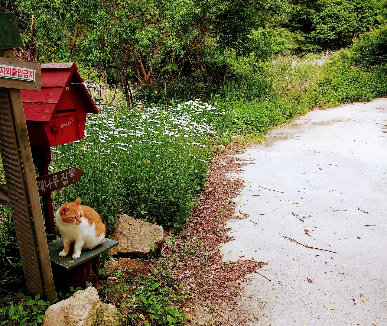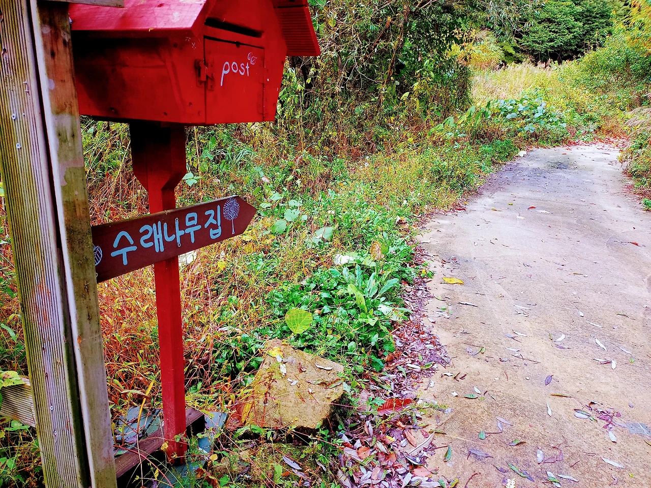 반장님이 선물해 준 우체통. 이곳에서 삼백 여 미터 굽이진 경사로를 올라야 집이 나온다.