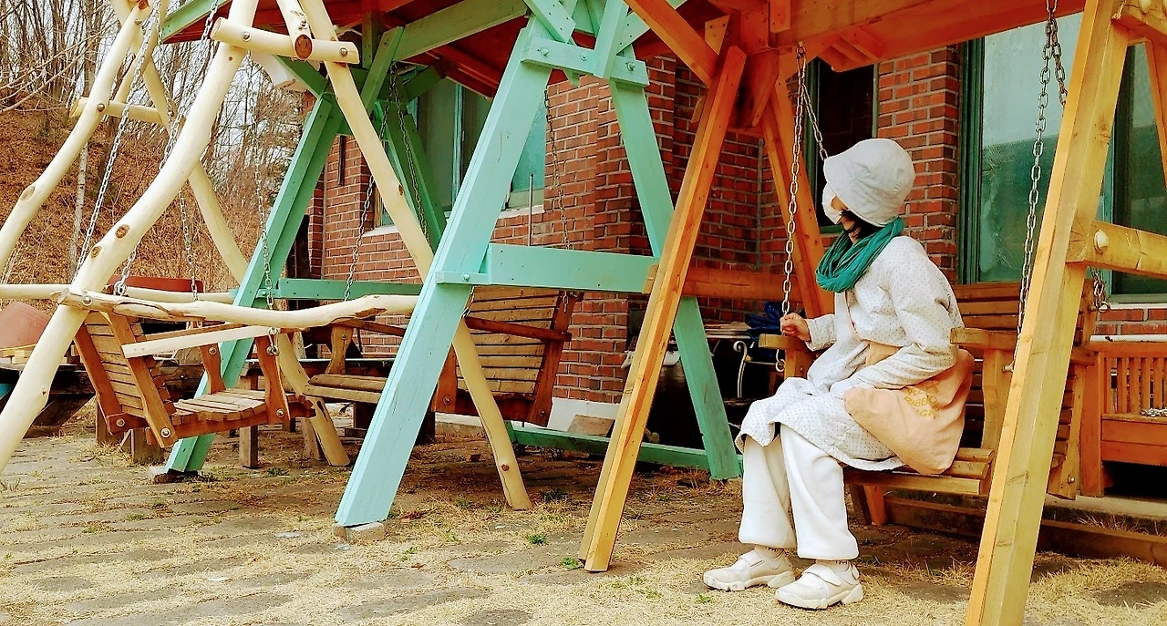 동생은 맨 처음 보았던 그네에게 오매불망 마음을 쏟아 급기야 ‘내 그네’라고 부르기에 이르렀다. 어느 날 동생의 '내 그네'는 채색을 하고 있었다. 지붕은 붉은 갈색, 기둥은 옥색, 의자는 나무색. 동생이 좋아하는 색 조합이었다. 혹시 판매 예정으로 색을 입힌 건가 싶었다.