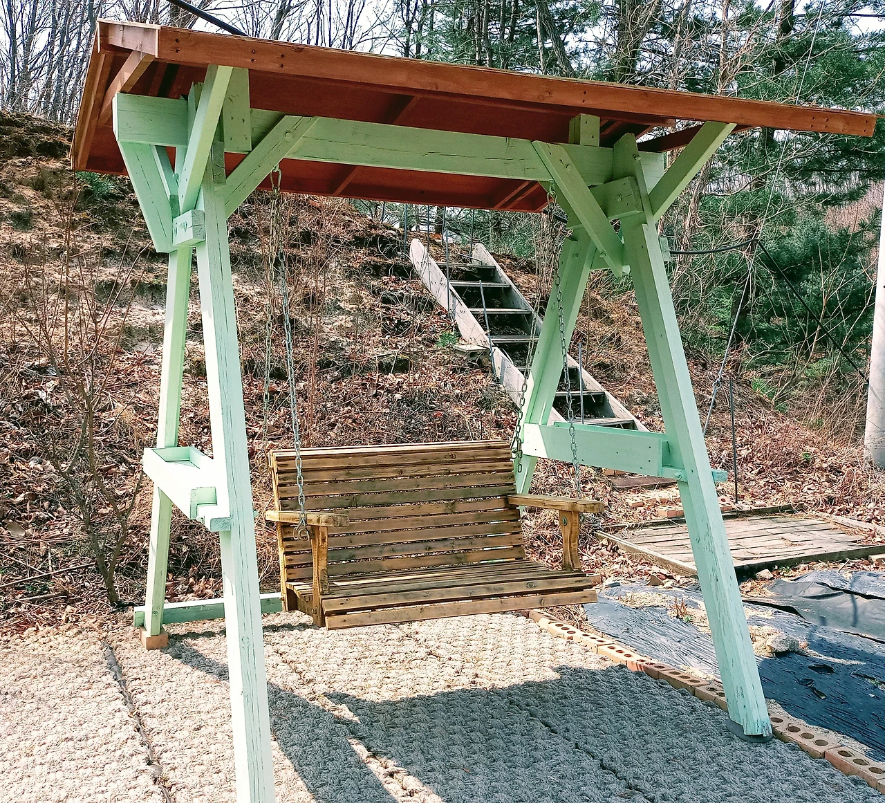 반장님이 떠나고 우리는 그네에 앉아 그간의 노고를 마음껏 풀었다. 인체 곡선을 살려 제작한 의자는 종일이라도 앉아 있고 싶도록 편안했다.