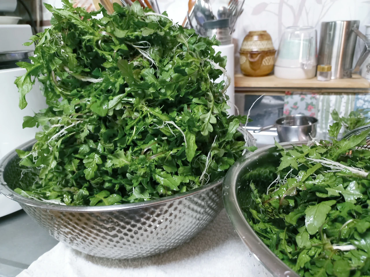나긋한 잎과 향긋한 뿌리는 깨끗이 씻어 데칠 준비를 한다. 물에 소금 한 술 넣고 팔팔 끓을 때 냉이를 넣는다. 위아래 한 번씩만 뒤집어 준 뒤 바로 꺼낸다. 찬물에 헹궈 재빨리 건져 올리면 냉이의 향을 최대한 가둘 수 있다. 양이 많을 땐 냉동실에 보관하는데 물기를 짜내지 않고 보관해야 향이 오래간다. 나물로 무칠 때도 물기를 너무 꽉 짜면 맛있는 국물을 버리는 것이다. 살살 짜서 먹기 좋게 잘라 소금과 참기름에 버무린다.