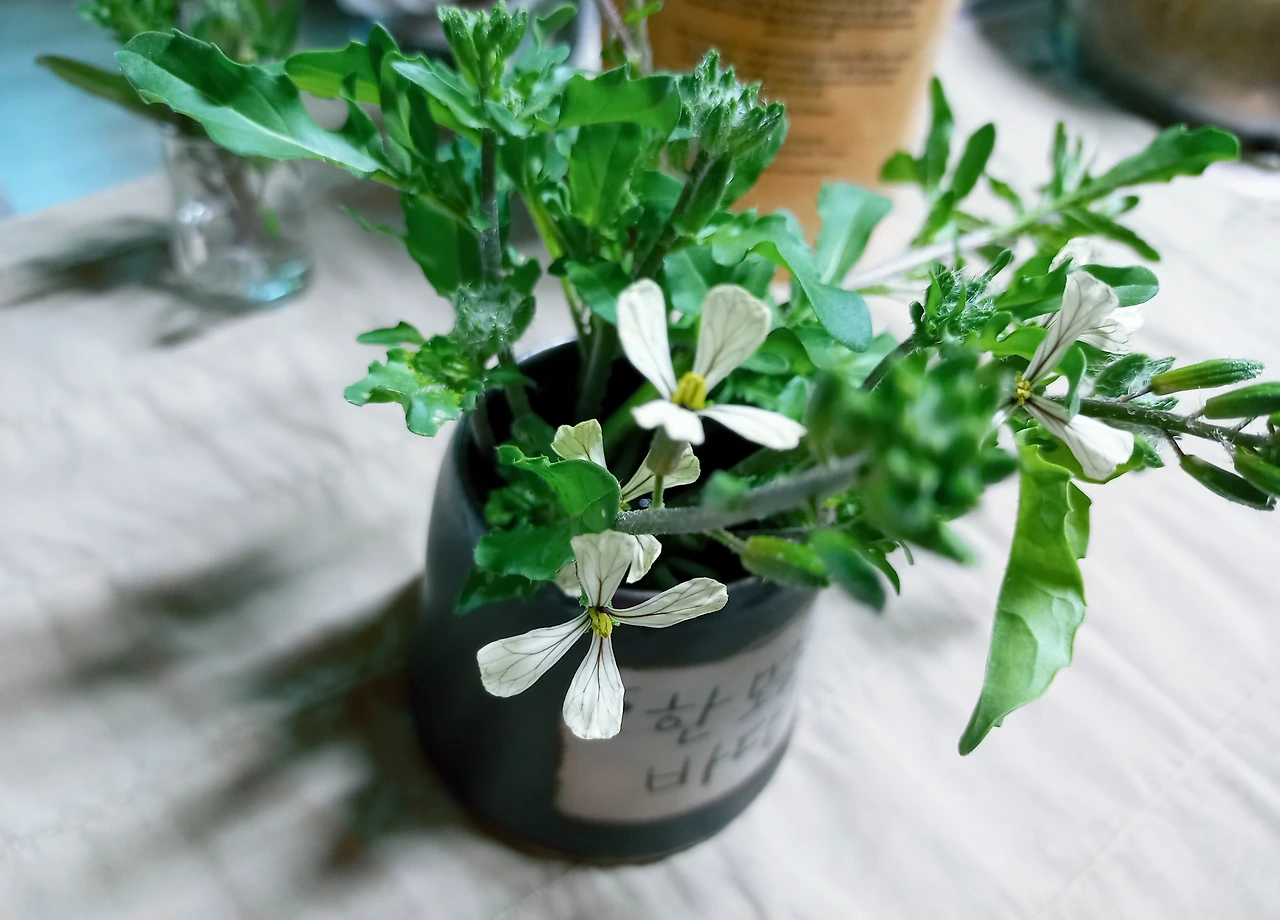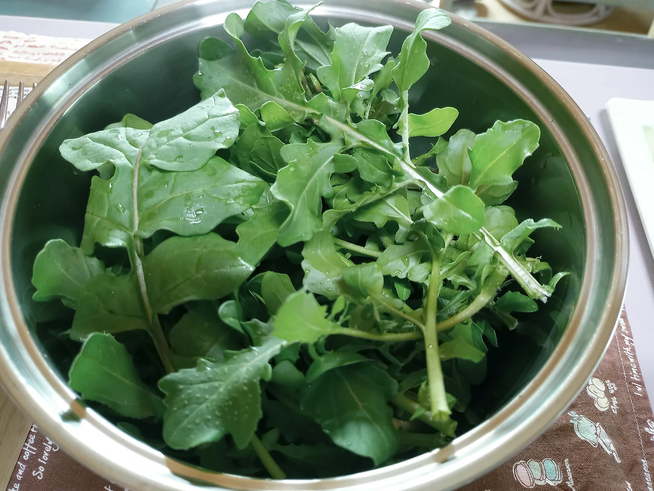 동생 손에도 막 끊어낸 루꼴라가 들려 있었다. 루꼴라를 유난히 좋아하는 동생. 소화력이 약해 다른 채소는 그다지 달가워 않는데 부드러운 루꼴라는 반긴다.
