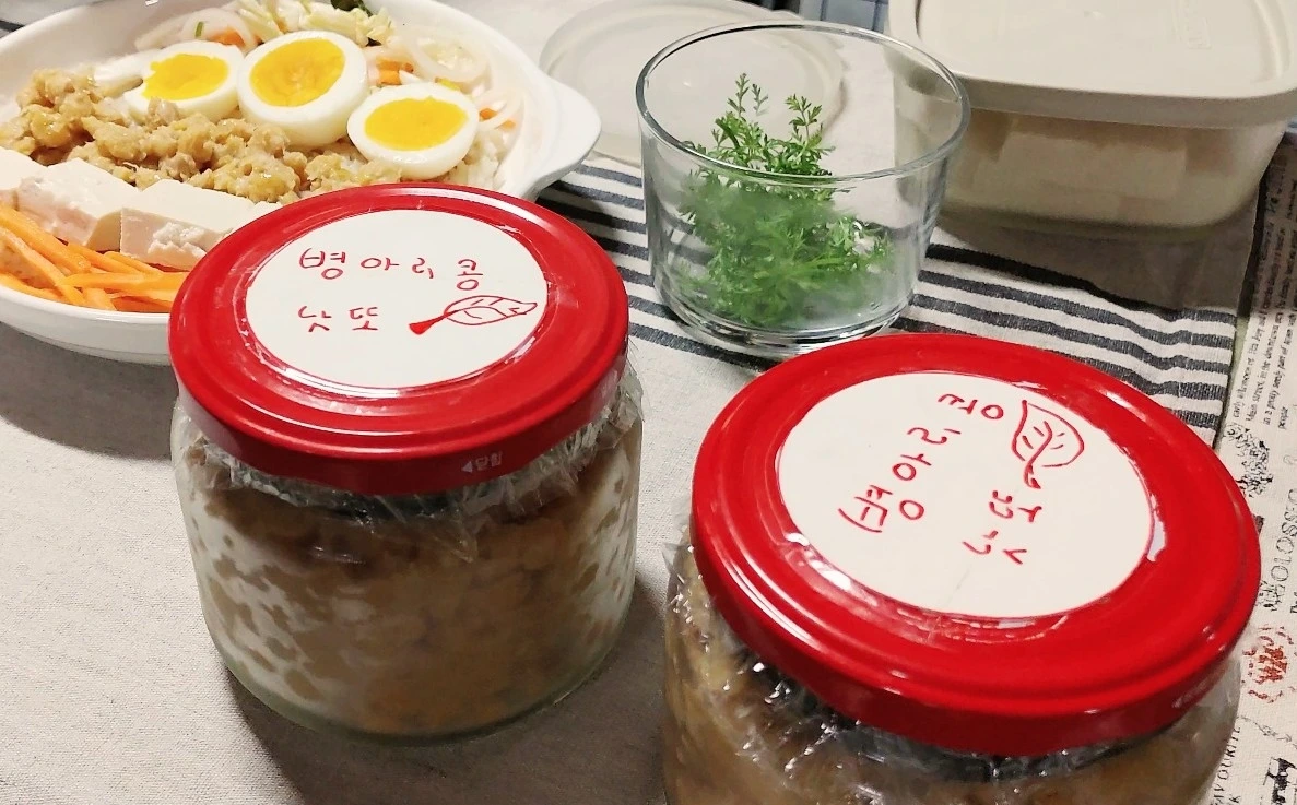눈 때문에 서둘러 가셔야 해서 포장해 드렸다. 낫또는 병아리콩을 삶아 24시간 밥솥에 발효시켜 만들었다.