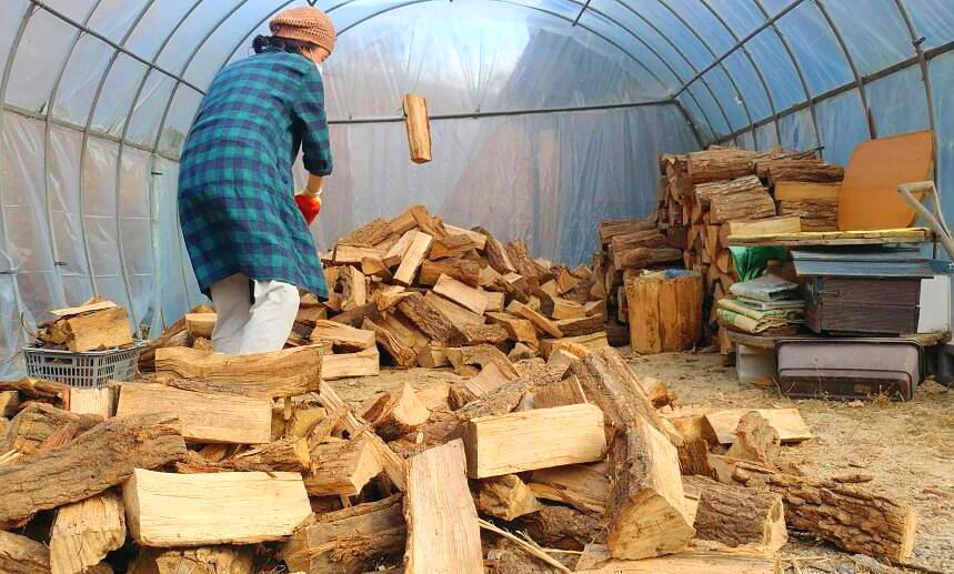 2,5톤 트럭에 장작을 싣고 온 청년이 유쾌하게 인사하며 운전석에서 내린 뒤 짐칸에 뛰어올랐다. 장작은 1루베씩 네 꾸러미로 포장되어 있었다. 무게가 엄청나 통째로 쏟아내지 못하고 어느 정도 양이 줄 때까지 일일이 손으로 던져 내려야 했다. 고단한 작업을 하면서도 청년은 웃음을 잃지 않았다. 올라가 거들어 준대도 마다했다.