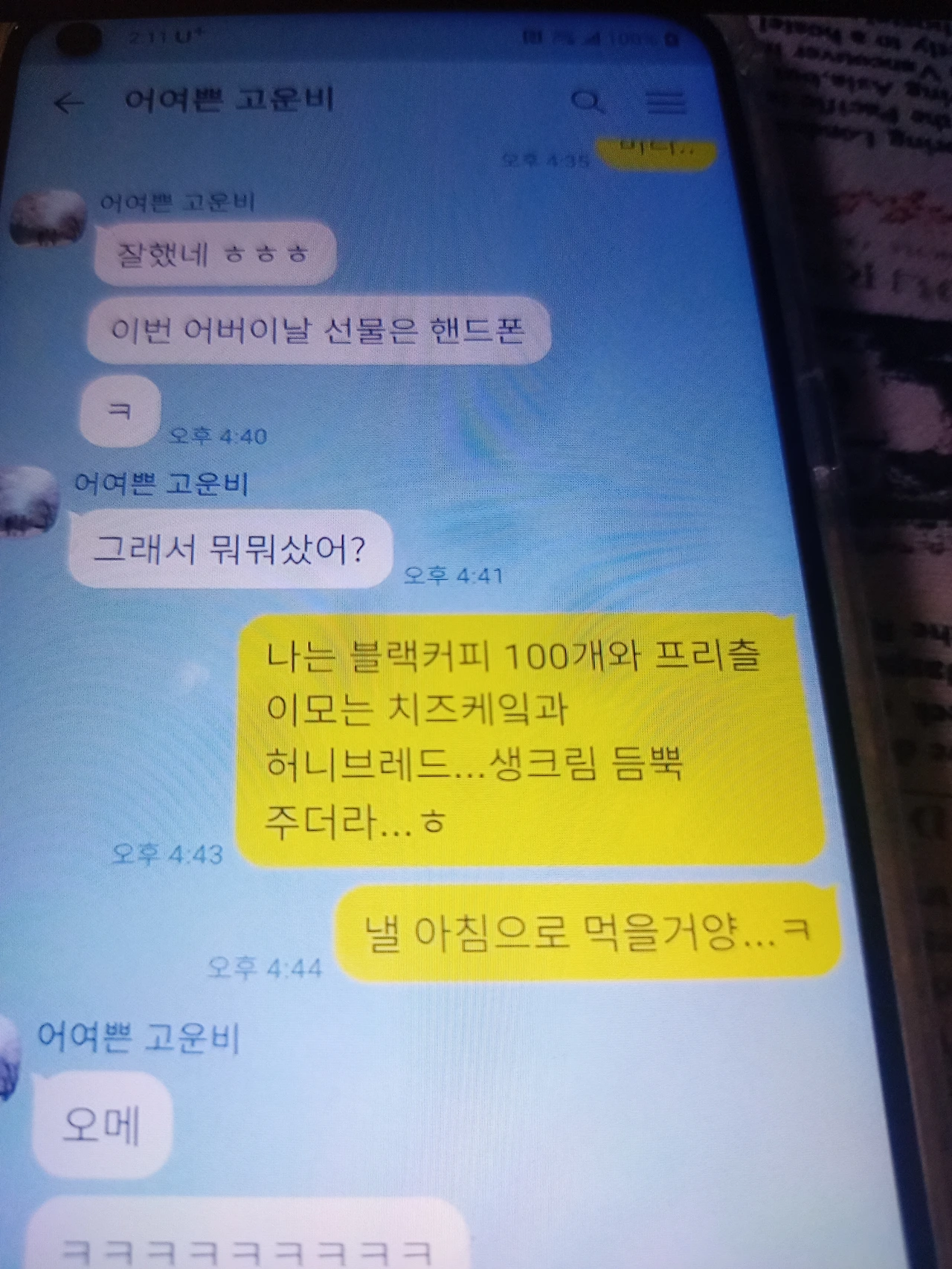 '잘했네 ㅎ ㅎ ㅎ 이번 어버이날 선물은 핸드폰'