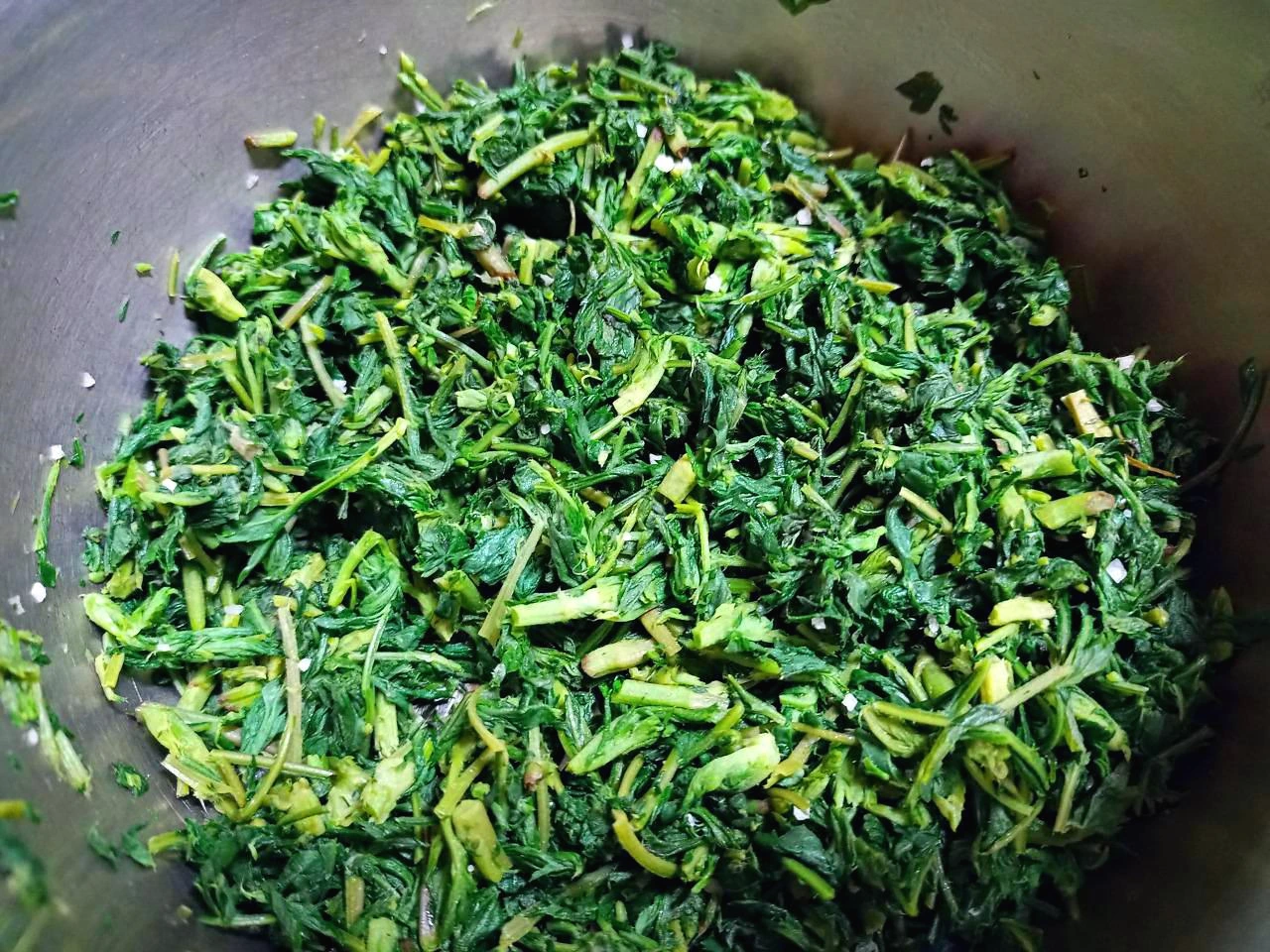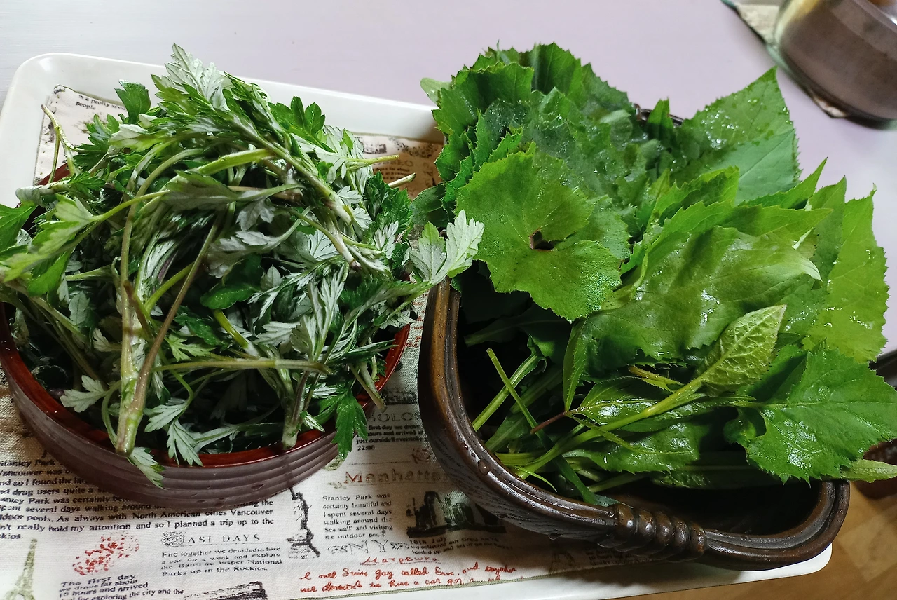 일을 키우지 말고 쑥과 머위만 하자고 마음먹었다. 쉽지가 않다. 보이는 순간 참지 못하고 손이 뻗어간다. 참취, 개미취, 당귀까지 바구니에 담긴다. 벌써 한여름 날씨다. 서둘러 나물을 다듬는다. 볕이 뜨거워 바구니 안의 나물은 이미 풀이 죽었다. 파라솔 아래 탁자에 펼쳐 놓으면 숨어 있던 작은 생명들이 바삐 탈출한다. 탁탁 털어가며 쑥과 나머지 나물, 두 종류로 정리한다. 쑥은 쑥밥을 만들고 나머지 나물은 머위와 함께 모두 장떡에 넣으면 된다.