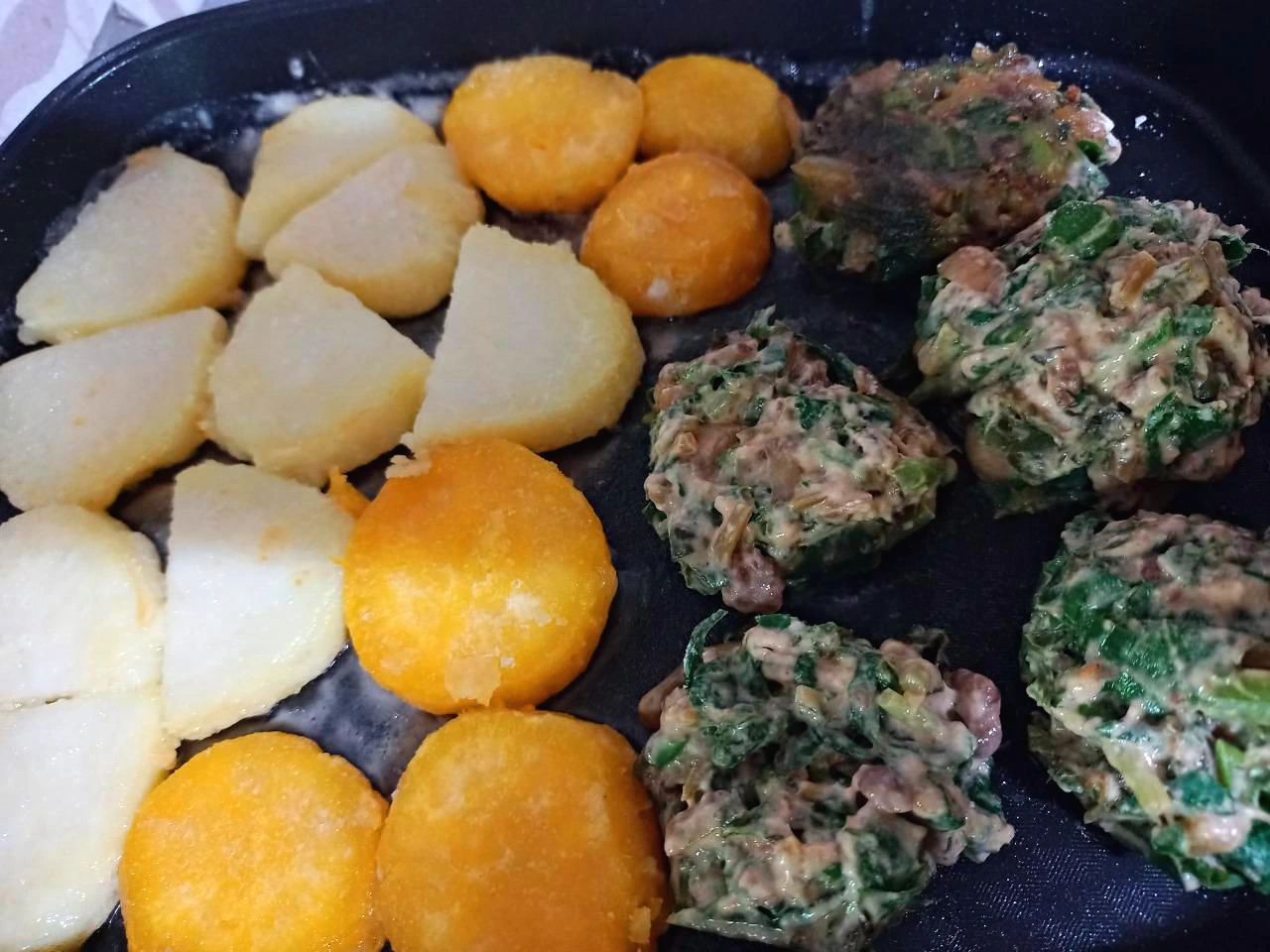 서너 번 물에 씻어 쑥부터 데쳐낸다. 잘게 썰어 소금과 참기름으로 간을 한다. 미리 해서 한 김 식힌 잡곡밥에 섞으면 쑥밥 완성. 감자와 고구마는 밥 위에 찐 것을 썰어 소금 톡톡 뿌린 뒤 전분에 굴려 프라이팬에 굽는다. 머위와 나머지 나물 데친 것 역시 잘게 썰어 된장 한 스푼, 밀가루 두 국자 넣어 장떡을 굽는다. 머위는 이제 쓴맛이 강해졌다. 그 쓴맛이 오히려 입맛을 돋운다. 머위 장떡, 구운 모양새는 그저 그런데 상당히 맛있다.