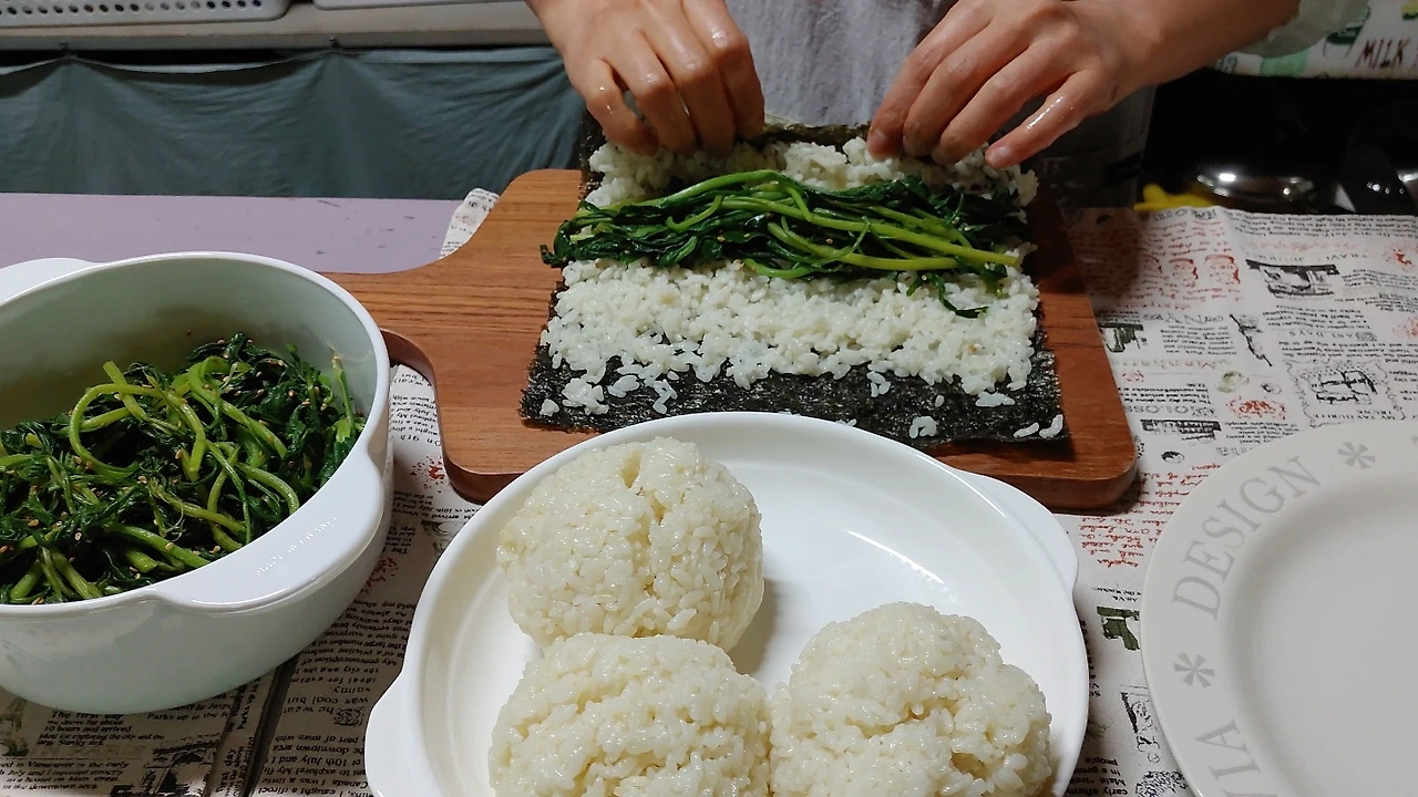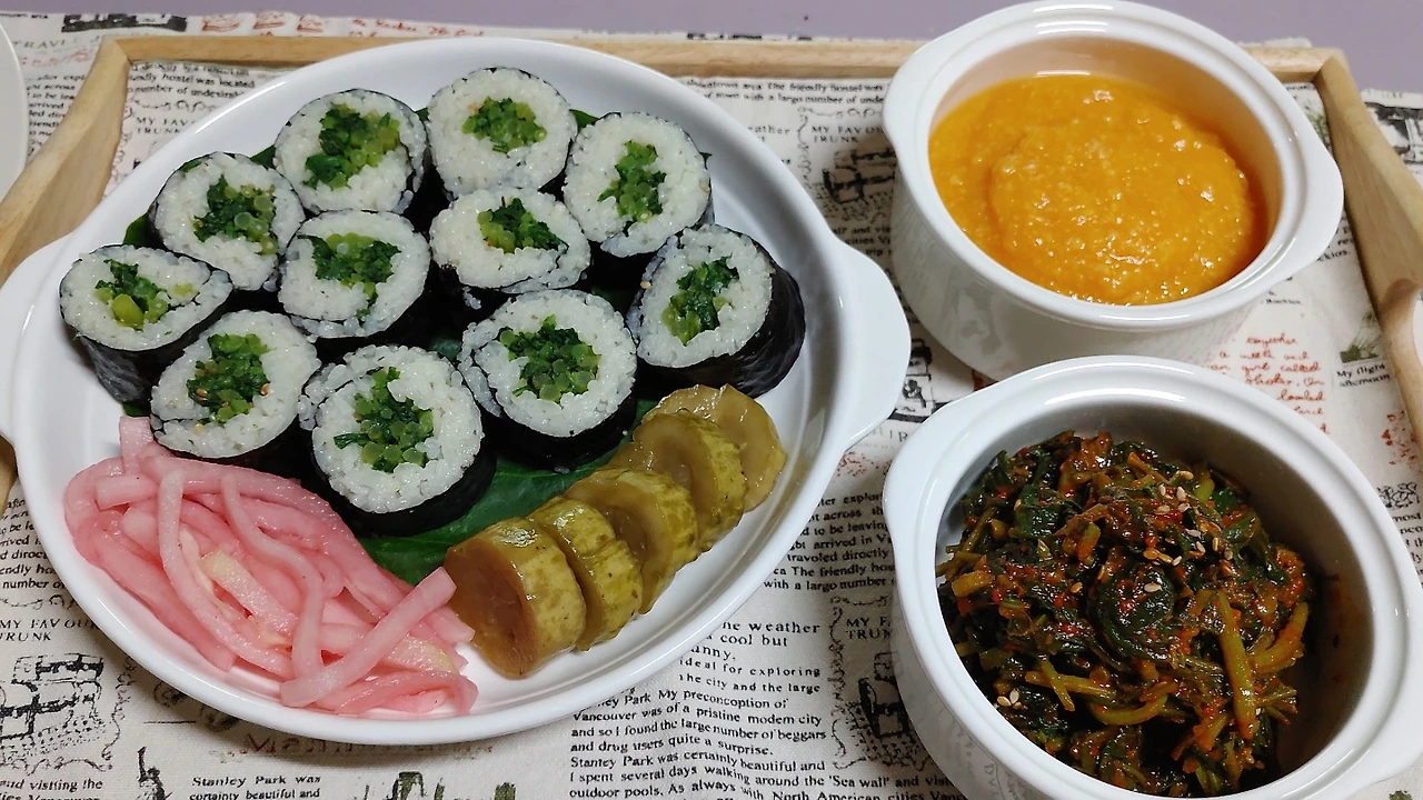“지난번 시금치만 넣은 김밥도 맛있다 했잖아.”