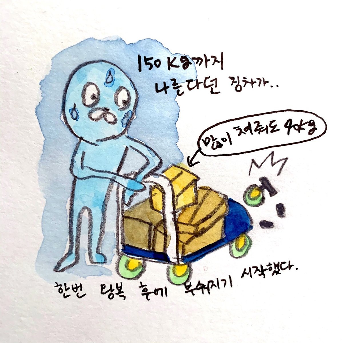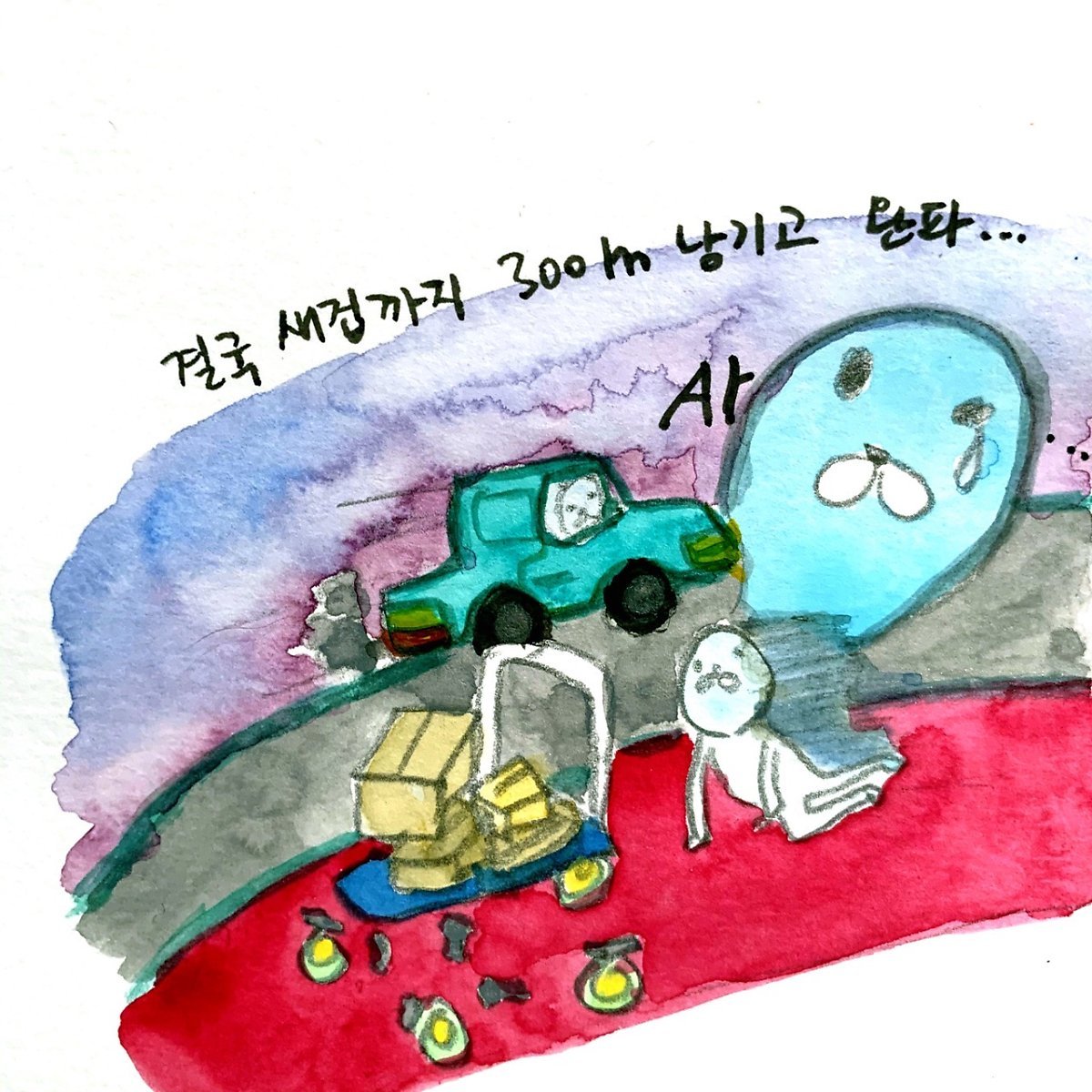 새로 이사한 집은 먼저 살던 곳에서 10분 거리에 떨어져 있다. 게다가 우리는 두 사람이 살기엔 매우 좁은 집에 살고 있었기 때문에 각자 나름의 방법으로 너무 짐을 늘이지 않으려 노력하고 있었다. 그래서 짐차만 있다면 우리끼리 짐을 옮겨도 될 거라고 자신 있게 생각했다. 우리는 그것을 실행에 옮겼고, 다니엘이 오피스 디포에서 박스를 사 오는 동안 나는 박스를 고정할 로프와 포장용 뽁뽁이 같은 것들을 사 날랐다. 그리고 이전 집에서 새집까지 이동하는 첫 여정은 매우 성공적이었기 때문에 우리는 아주 똑똑한 사람이 된 기분을 만끽할 수 있었다. 그리고 나는 두 번째 여정을 위해 이전 집으로 간 다니엘이 땀에 절어 나타날 때까지 우리를 덮칠 가장 큰 배신에 대해 눈치채지 못하고 있었다. 다니엘에게 물을 좀 먹이고 물어보니 이전 집에서 나오자마자 바퀴 하나가 바닥에 나뒹굴었단다. 나머지 두 개의 바퀴는 새 집에서 300m 정도 떨어진 곳에서 박살 났다나, 짐차는 바로 그날 아침 배송된 따끈따끈한 신품이었다. 게다가 의심병이 있는 내가 후기를 하나하나 검증해 가며 선택한 것인데! 도합 150킬로를 나를 수 있다던 짐차가 넉넉히 쳐 줘도 40킬로가 안 되는 짐 때문에 길바닥에서 퍼지다니. 짐차,, 너마저.. 나는 이 배신의 연쇄에서 벗어나고 싶은 마음이 간절했다. 나머지 이사는 10만 원 주고 산 31인치 캐리어에 과적을 해서 해결했다. 150킬로를 나른다던 짐차가 못 한 것을 한 인간과 저가형 캐리어가 해냈다! 짐차한테 이겨 봤자 무슨 상을 받는 것도 아니지만. 짐차를 환불하는 과정 또한 험난하다. 방문 반품 같은 서비스는 없고, 이 짐차를 잘 포장해-박스는 이미 버렸다..- 우체국까지 잘 들고 가야 하기 때문이다. 이 모든 게 운동 부족인 나를 위한 조물주의 배려인가…운동은 모르겠고 삶에 불신감이 높아진 건 확실하다.