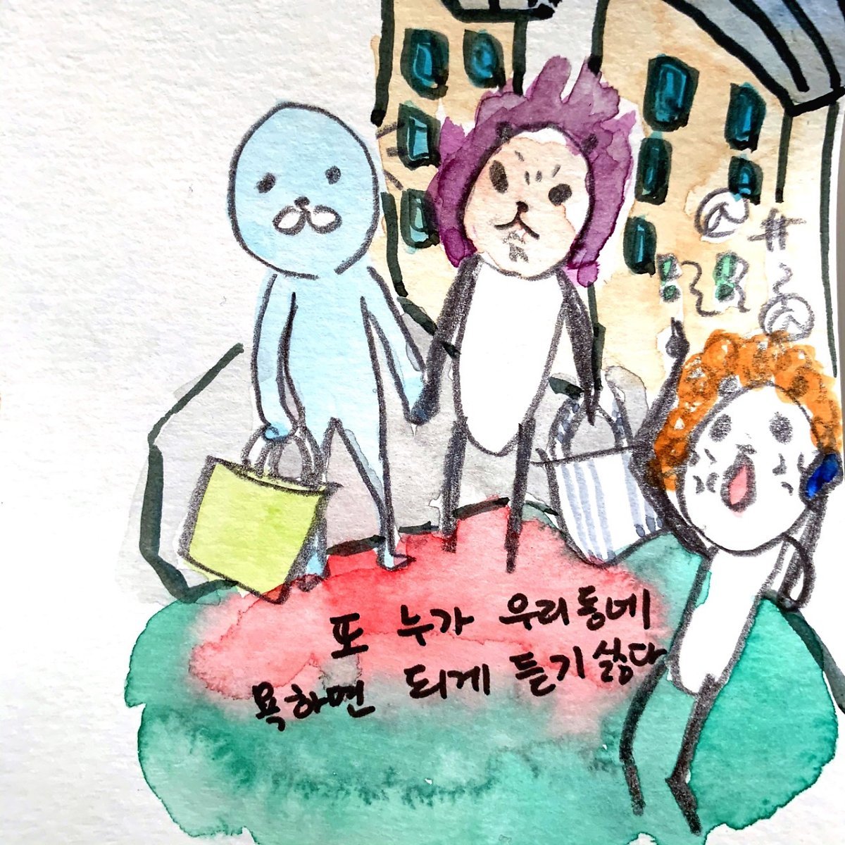 약간 오래된 일이지만 다니엘과 복사집에 다녀오느라(당시에는 집에 프린터가 없었다) 꽤 먼 길을 걸었던 적이 있다. 택배 아저씨가 집에서 20분 떨어진 곳에 택배를 맡겼을 때나 복사집처럼 살짝 먼 곳에 떨어진 곳을 방문할 때가 아니면 늘 가던 곳만 들르기 일쑤라 내 딴에는 호기심 어린 눈으로 여기저기를 스캔하느라 바빴었다. 거리의 풍경이 슬슬 눈에 익기 시작할 때, '아 여기부터는 아는 곳이다' 같은 생각을 할 즈음이었다. 내 앞을 지나가던 아프로 파마 총각이 매우 화를 내면서 우리 동네를 욕하는 게 아닌가! 대강 '이 망할 놈의 동네는 까르푸도 없고 아주 무슨 사막을 걸어가는 기분이야, 망할 놈의 배터리 하나 사는데 이렇게 오래 걸리는 건 말도 안 돼 아주 망할 놈의 동네야' 같은 내용이었다. 그때 그 총각에게 꽤 진심으로 화가 났었다. 그게 며칠 전에야 기억이 났다. 그래서 재미있었다.