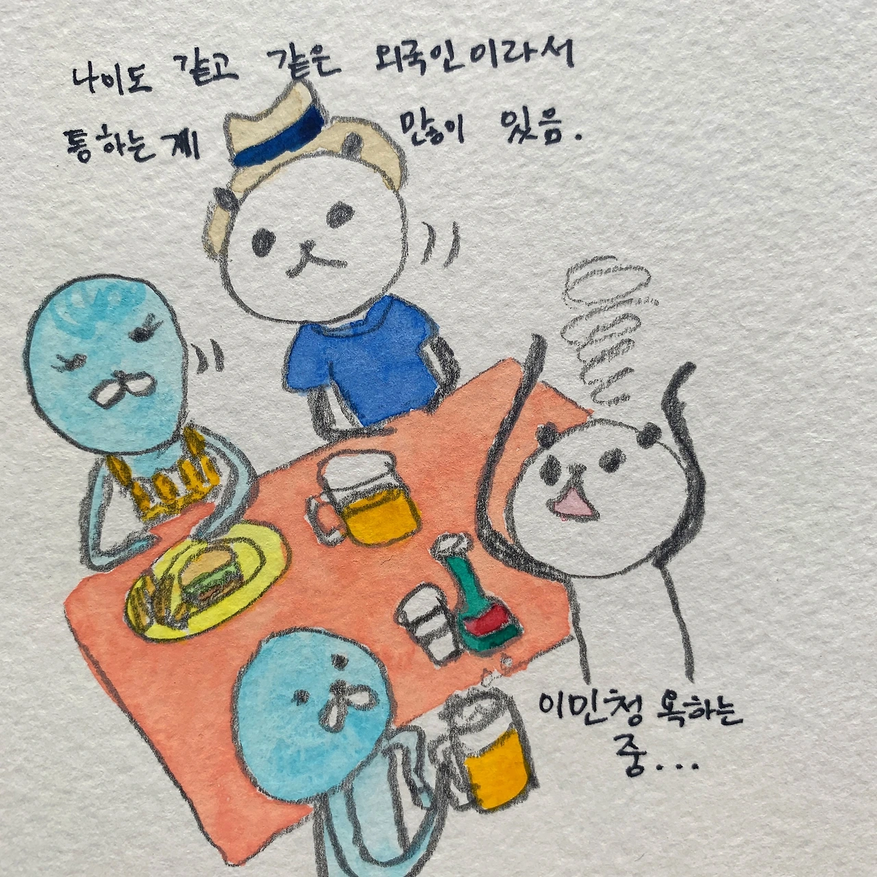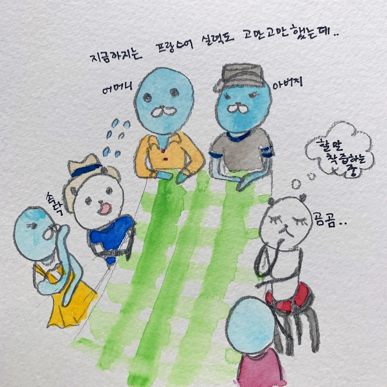이렇게 약간은 압박을 느끼게 되었지만 호세가 다니엘의 가족이라 정말 좋다고 생각한다! 게다가 호세가 없었다면 내가 지금 발등에 불이 떨어졌다고 푸드덕거리고 있을까...? 그럴 리가 없다. 어학원에 다녔다 하더라도, 옆 친구는 붙고 나는 떨어졌대도 그러려니 했을 텐데 상대가 1년에 몇 번은 보는 사람이다 보니 꽤나 생생한 위기감이 든다. 보통은 어른이 되면 느낄 기회가 별로 없는 감정이 말이다..경쟁심도 아니고 질투도 아닌 순수한 위기감이다. 공부를 열심히 해야겠다.