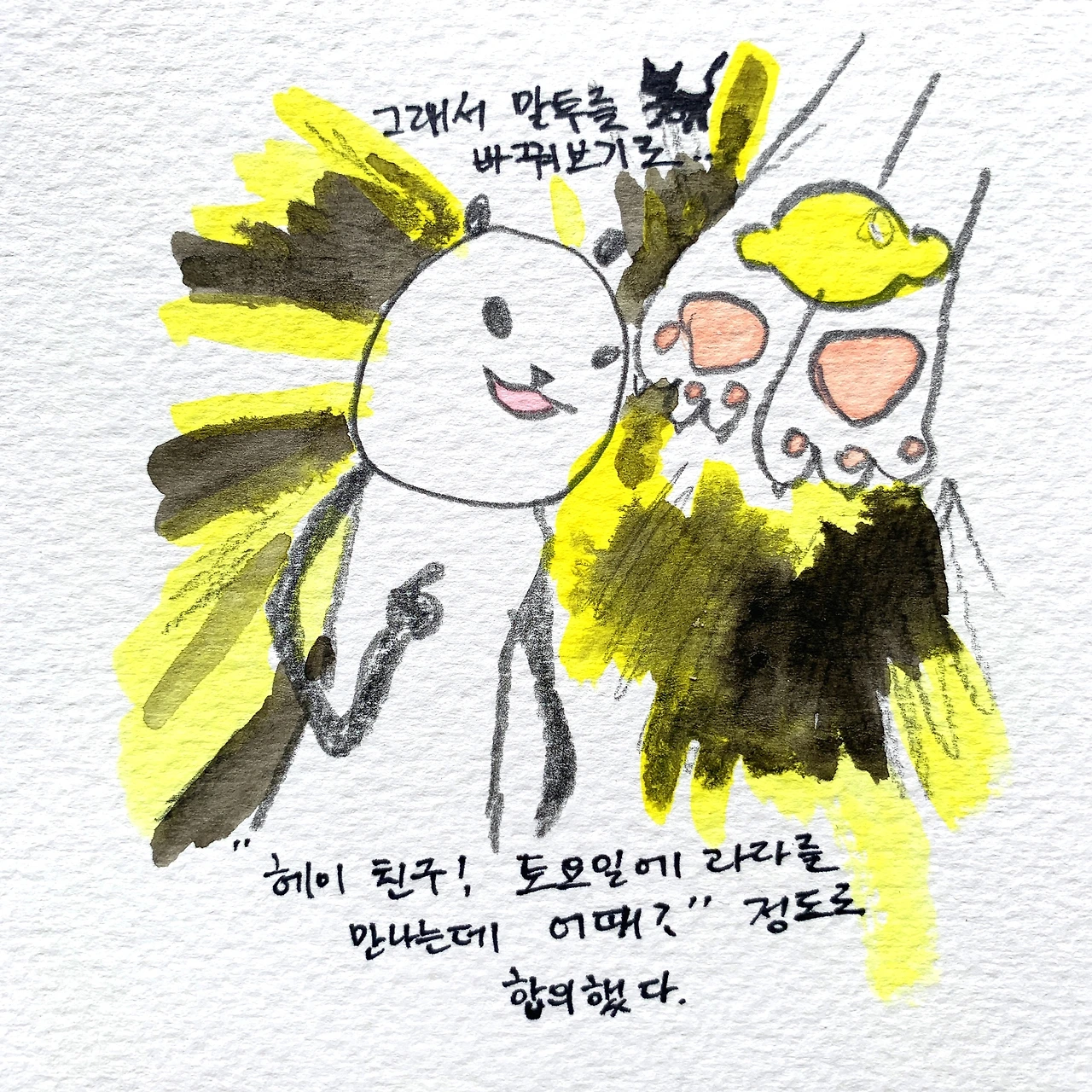 "아니 그렇게까지 말할 필요는 없고... 그냥 나 토요일에 라라 만나러 간다~~ 이렇게."