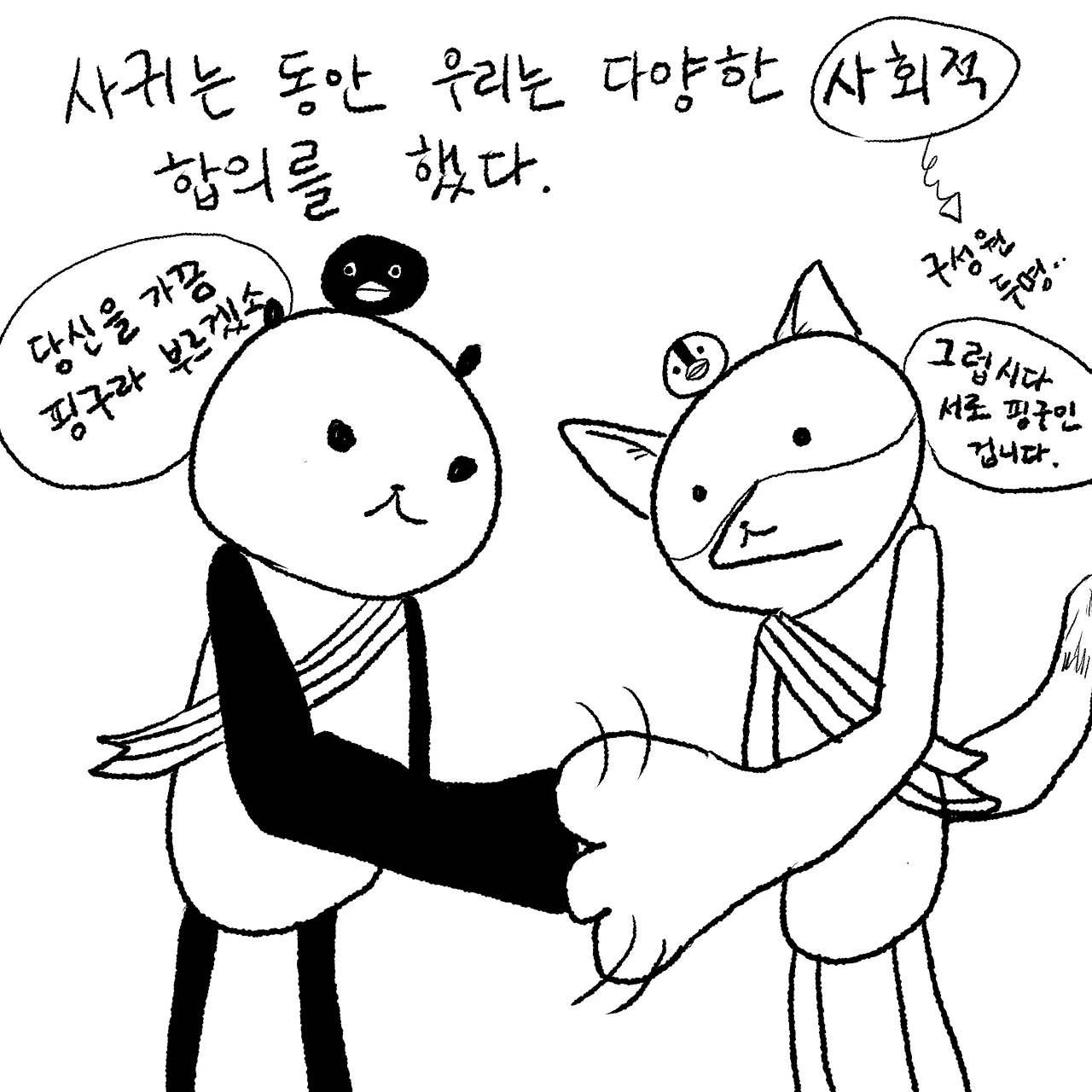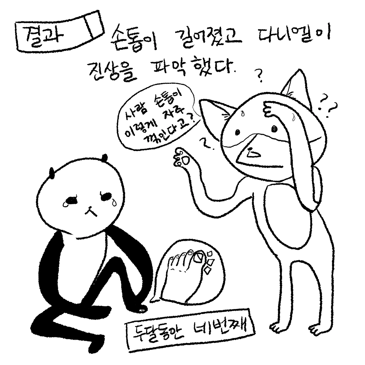 손톱 개정안 시행 전, 다니엘이 많이 늘은 한국어로 말했다. 내가 계속 이따위로 손톱을 깎다 보면 20년, 30년 후에는 손톱 자체가 아예 사라질 거라는 것이다. 아무튼 다니엘의 끈기 있는 노력으로 나는 전보다 더 사람 같은(다니엘에 의하면) 손톱을 갖게 되었다. 나는 다니엘의 손 닦기 습관과 분리수거 습관을 바꾸었고. 내가 집을 나서기 전에 다니엘이 '열쇠는?'이라고 물어 겨우 집 열쇠를 들고 회사를 향할 때, 옛날에는 나만 했던 일이 하나둘씩 같이 하는 일이 되어갈 때, 다니엘이 손에 꾸덕한 핸드크림을 묻히고 내 발을 올리라는 뜻으로 자기 무릎을 가리킬 때(발마사지를 위해서). 나는 우리 두 핑구의 세상이 점점 더 서로에게 스며들고 있음을 확인한다.
