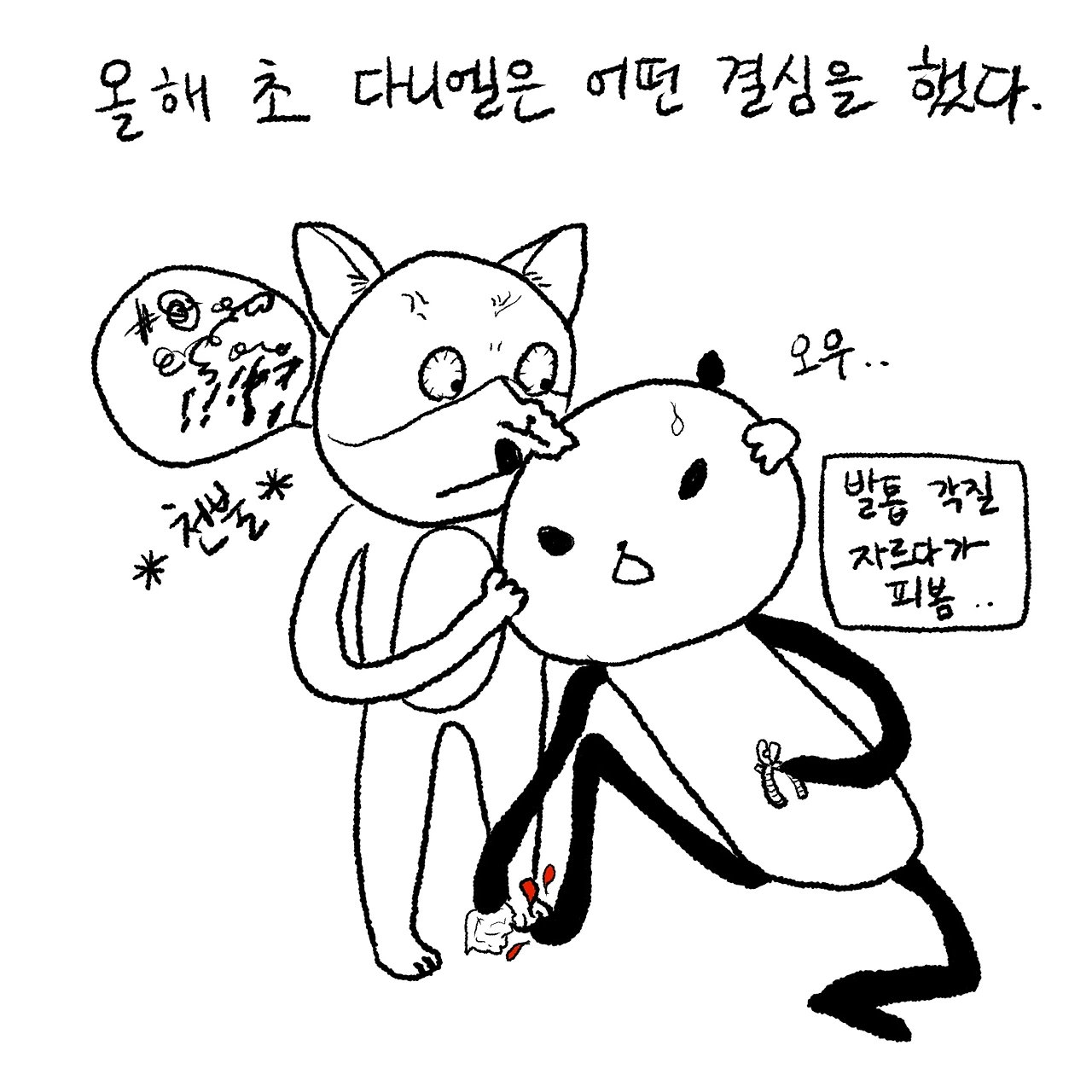 계기는 아마 내가 발가락 각질을 너무 깊이 깎아서 피를 본 일이었던 것 같다. 나는 어릴 때 티눈이 정말 잘 생기는 체질이었던지라 발톱깎이로 티눈을 잘라내다가 피를 보는 일이 많았기 때문에 이날도 좀 깊이 들어갔나 보네, 소독해야겠다 정도밖에 생각이 나지 않았다. 다니엘의 반응이 너무 선명하게 상상되었기 때문에 말을 하지 않는 게 나을까도 잠깐 생각했지만 같이 살면서 반창고 붙은 발가락을 숨긴다는 건 불가능에 가깝기 때문에 지체 없이 자진 납세했다. 그날 집에 온 다니엘이 의외로 담담하길래 그냥 다쳤나 보다 하는 줄 알았더니 내 손발톱 사진을 찍는 거다.