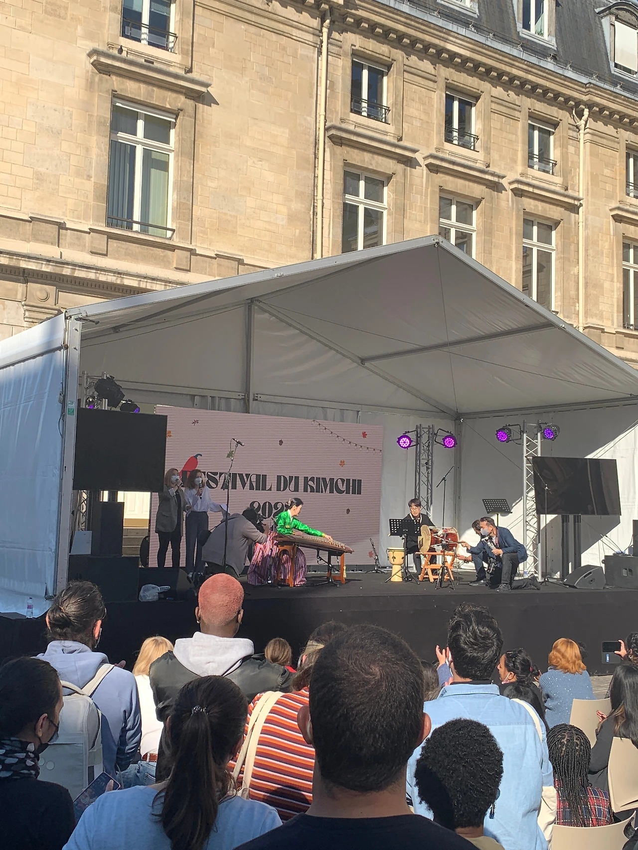 회장에 브레이브걸스의 노래가 흘러나오고 있었다. 아니, 명곡이긴 한데 이 곡을 사람들이 알까? 생각하며 입구에서 보건 패스 검사를 받았다. 그렇게 들어간 회장에 생각보다 훨씬 많은 사람들이 있었다. 앞줄에 마련된 좌석은 이미 꽉 찼고 사람들은 잡채나 핫도그, 전 같은 먹을거리를 손에 들고 서서 공연을 보고 있었다. 그냥 봐도 한국 사람보다 프랑스 사람이 훨씬 많다. 머리에 딱밤을 한대 맞은 기분이 들었다. 아아.. 내 '홍대병'은 나은 적이 없었고 사실 '홍대병'이 '비주류 병'으로 변한 거 뿐이었나? 사실 그랬던 건가? 아니 진짜야? 우리 나라 문화 이제 주류문화라고 해도 되는 거야? 나는 주인에게서 '기다려'와 '먹어'를 동시에 들은 개처럼 혼란스러웠다.