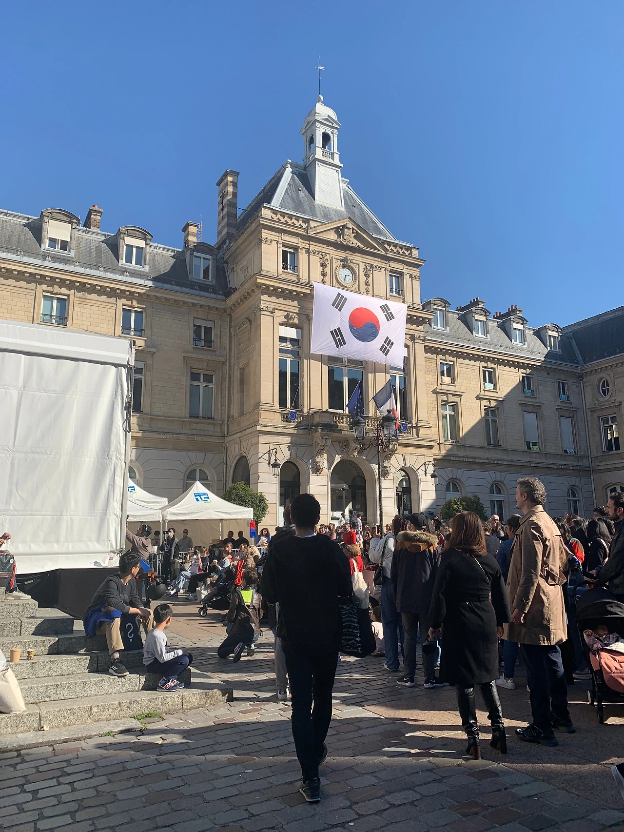 오늘 아침에 일어나 구청에서 '김치 페스티벌'을 한다는 이야기를 들었을 때 나는 아, 여기가 한국 사람이 많이 사는 동네라서 이런 이벤트도 있구나 라고만 생각했다. 매년 해왔던 모양이지만 아직 가본 적이 없어서 그냥 아파트 단지에서 열리는 장터 같은 풍경을 생각했다. 그리고 내가 상상한 풍경 속에 프랑스 사람들은 별로 없었다. 평소에 일본을 너무 좋아하는 프랑스 사람들이라서 그런가, 아무리 작은 행정구역에를 가도 일본 관련 소품가게는 꼭 있는 나라라서 그런가. 애초에 그들이 내, 우리 문화에 관심을 가질 거라는 생각을 크게 하지 않았다. 하지만 이렇게 쿨한 척 비관적으로 생각하는 사람 치고는 우스울 만큼 구청에 내걸린 3호 태극기의 존재가 너무나 반가웠다. 이게 뭐라고, 그냥 오늘 축제하는 거라 걸어놨을 뿐인데. 한국에 못간지 1년이 되어가서 그런가? 이렇게 반가울 일인가. 나도 내가 웃겼다.