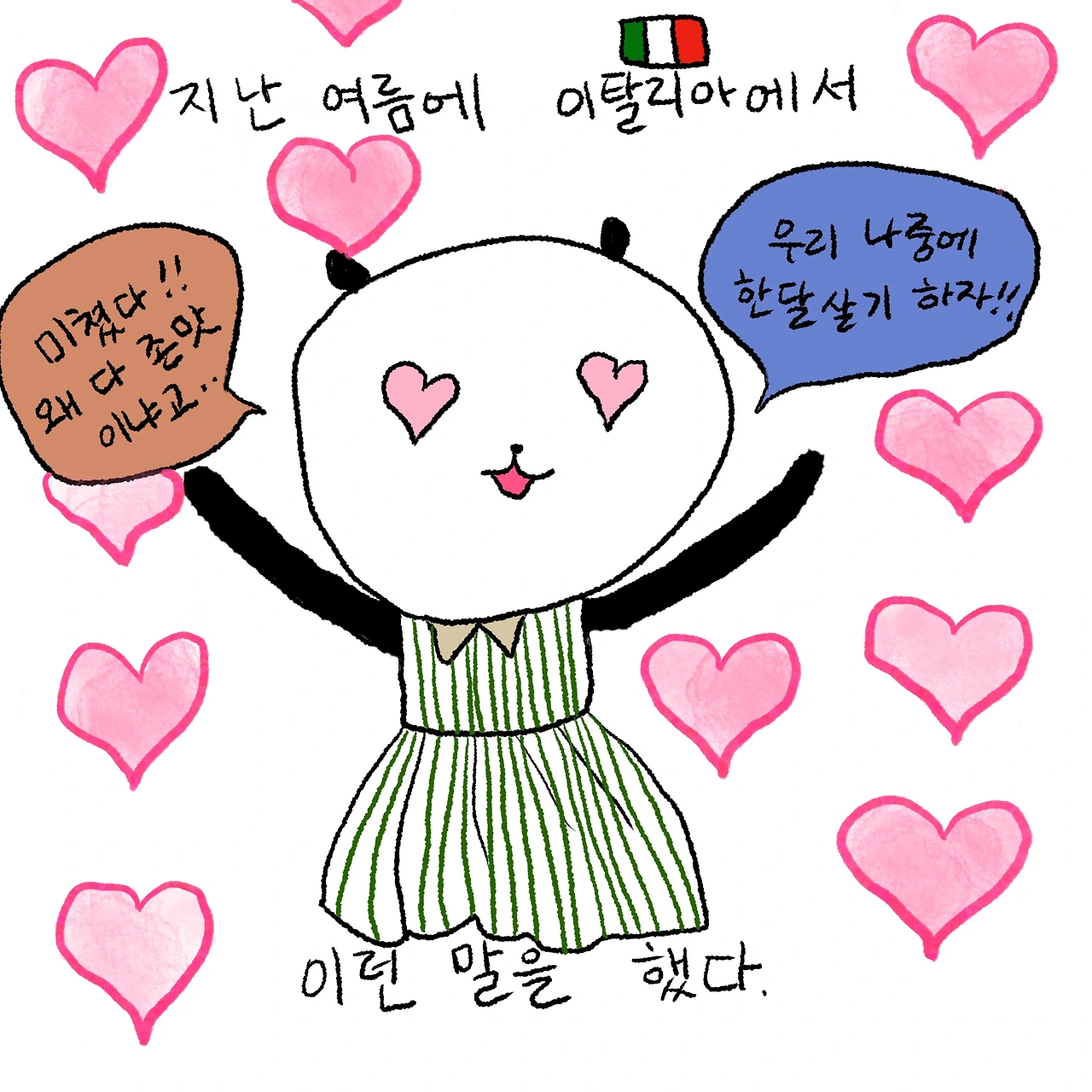 나는 가벼운 충격을 받았다. 내가 살면서 프랑스인의 입에서 이런 말이 나오는 걸 보다니 싶어서. 하지만 엄밀히 말하면 다니엘에게 이탈리아 한 달 살기는 아주 불가능한 일은 아니다. 우리가 그 해 한국에 가지 않는다고 가정하고, 또 다니엘이 더 많은 휴가를 찾아서 금융권 사내 변호사-금융권 사람들은 7주, 8주까지도 (유급) 휴가를 받는 걸 봤다- 등의 직군으로 이직한다면 4주의 휴가를 이탈리아에서만 보낼 수 있다. 직업을 잃지 않고도 말이다. 하지만 '퇴사하지 않는 한 한 달 살기는 그저 꿈에 불과하다'가 오직 아시아권만의 현실이라고 오래 믿어온 탓에 다니엘이 그런 말을 한다는 게 꽤 놀라웠다. 그렇지, 다니엘도 사람인데 말이다. 회사를 옮긴다는 게 그리 간단한 일도 아니고.