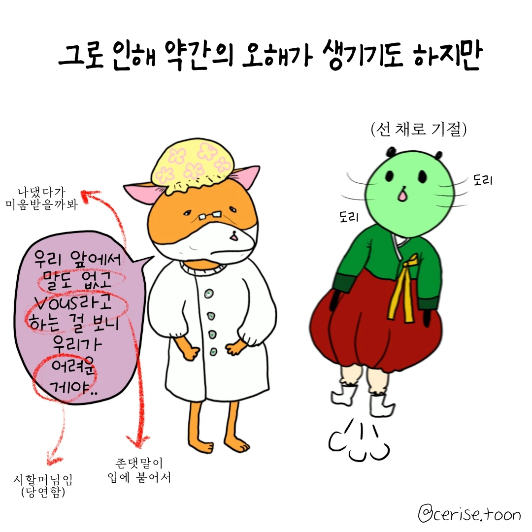 - 왜 너는 남 대하듯 서먹하게 Vous라고 하냐면서 서운한 듯 아닌듯한 말씀을 하는 시할아버님과 시할머님