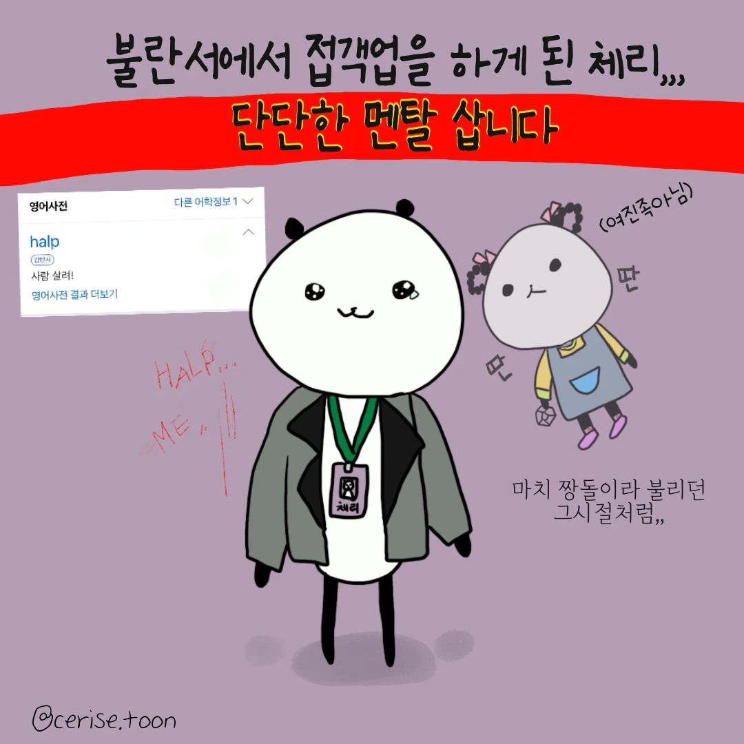 직장에서 만난 사람들 중 가장 느긋해 보이는 동료가 해준 말이 의외였다. '고객들 중에는 네가 도와줘도 네 등에 칼을 꽂는 사람들-클레임-이 있을 거야, 그래서 너는 스트레스를 잘 관리할 필요가 있어. 나는 그럴 때면 우리가 만화 속의 캐릭터들이라고 생각해.' 가장 의외의 타이밍에 의외인 사람에게 들은 조언이 어찌나 절묘하던지. 때마침 며칠 전 해달라는 대로 다 해준 고객이 거짓 클레임을 보내온 참이라 무척 공감이 갔다.