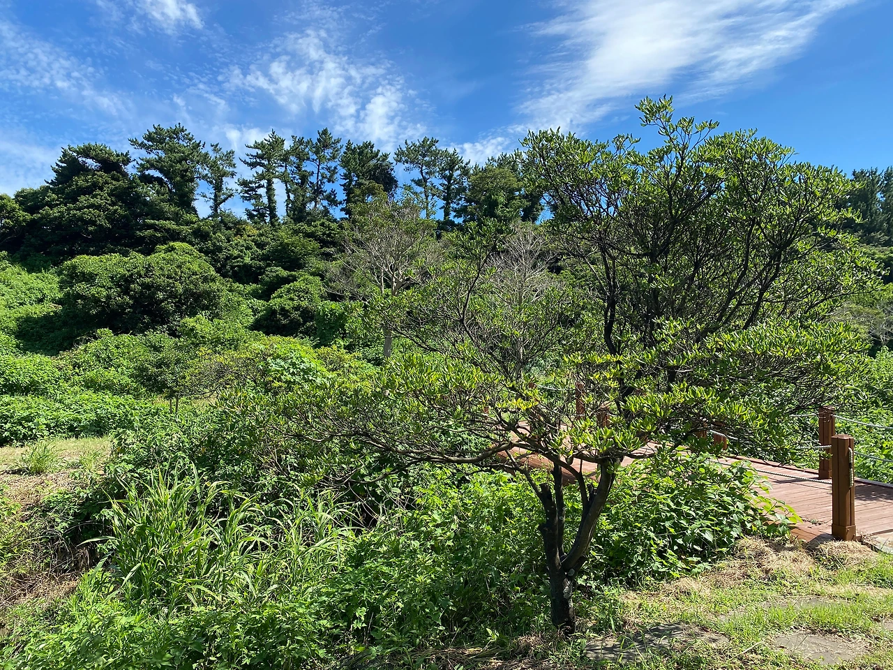 중문 주상절리를 지나 중문관광로를 따라 조금 걸으면 8코스의 명소 베릿내 오름이 나온다. 천제연의 깊은 골짜기 사이로 은하수처럼 물이 흐린다고 해서 '별이 내린 내'라고 부르던 것이 베릿내가 되었다. 이름이 정말 예쁘다. 베릿내 오름은 표고 101.2m의 가뿐한 오름이다. 내려다보는 바다는 조금 심심했다. 섶섬, 문섬, 범섬 그리고 새섬이 서귀포 바다를 얼마나 예쁘게 장식해줬는지 안 보이니까 더욱 느껴진다.