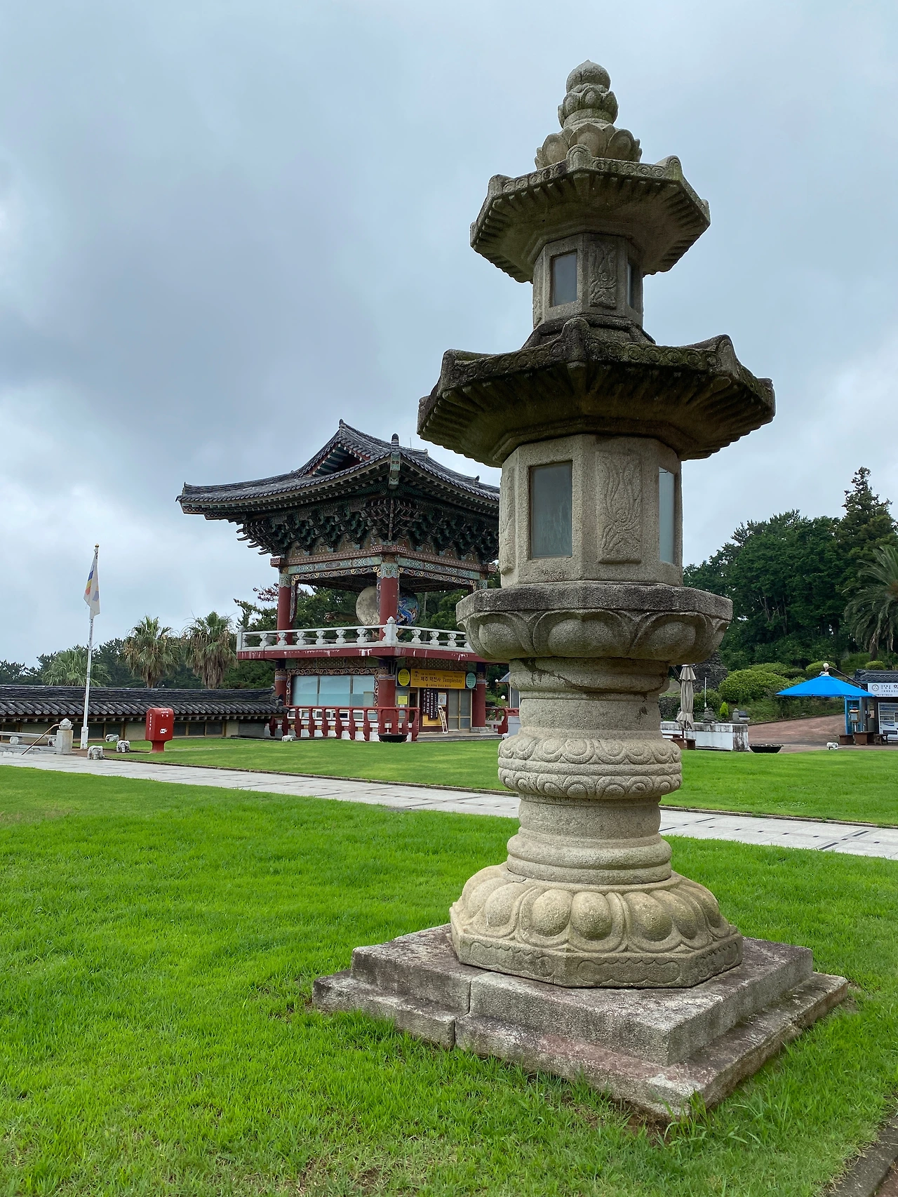 곧 약천사가 나온다. 약천사는 중국 절 느낌이 난다. 거대한 크기 때문일 것이다. 약천사의 창건 기록은 남아 있지 않다. 다만 통일신라시대 근처 한라산 쪽으로 법화사라는 큰 사찰이 있었기 때문에 그 부속암자가 인근에 산재했을 것으로 추측하고 있다.