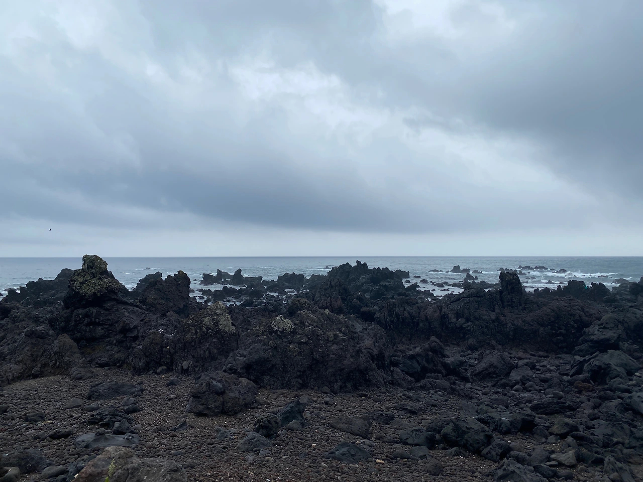 울퉁불퉁한 아아용암이 만들어낸 현무암 작품인 이곳을 지나면 대포포구가 나온다.