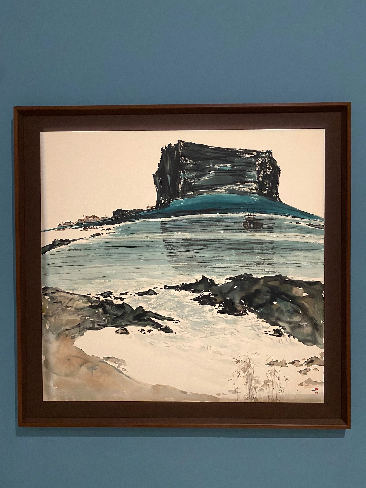 성산일출봉 작품도 여태껏 본 것 중에 두 번째로 좋다. 수묵화 특유의 대충대충 먹으로 칠한 듯한 과감하고 두꺼운 터치가 인상적이다. 수마 해변에 비치는 성산 일출봉의 그림자 속에 들어가고 싶다. 오른쪽 아래에 슥슥 그린 듯한 잡초부터 왼쪽 위에 비어있는 하얀 하늘까지. 바다 밑바닥까지 보일 것 같은 투명한 느낌의 바다색이다.