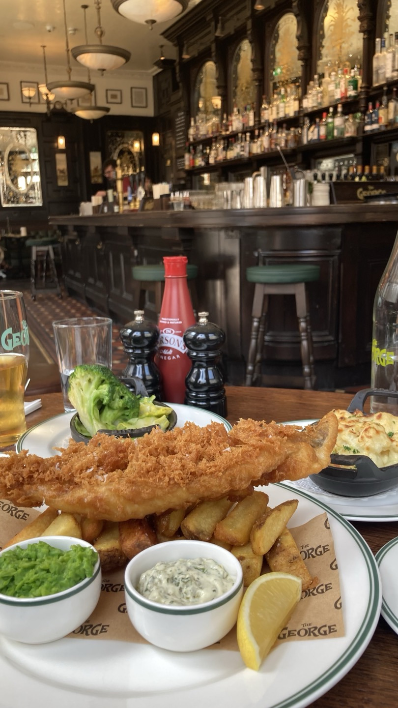 The George - 예전에는 펍에서 파는 음식 종류가 다양하지 않았다는데, 요즘은 태국요리, 프라이드치킨, 필리핀 요리 등 다양한 메뉴를 선보이는 펍들이 많이 생긴 것 같다. 그중 캠든이긴 하지만, 런던 중심가 쪽 Great Portland Street에 있는 The George의 fish and chips는 가격은 그다지 싸진 않지만, 맛있게 먹은 fish and chips 몇 안 되는 맛집 중 하나. 특이한 건 바삭한 튀김옷 위에 빵가루 비슷한 걸 한번 더 올려 더 바삭한 느낌을 줬다는 것. 그리고 사이드로 브로콜리와 콜리플라워를 시켰는데, 사이드 메뉴도 다 만족스러운 퀄리티였다. 여긴 펍이라서 공간이 꽤 크긴 하지만 금요일이나 주말에는 자리가 없으니 미리 예약 필수.