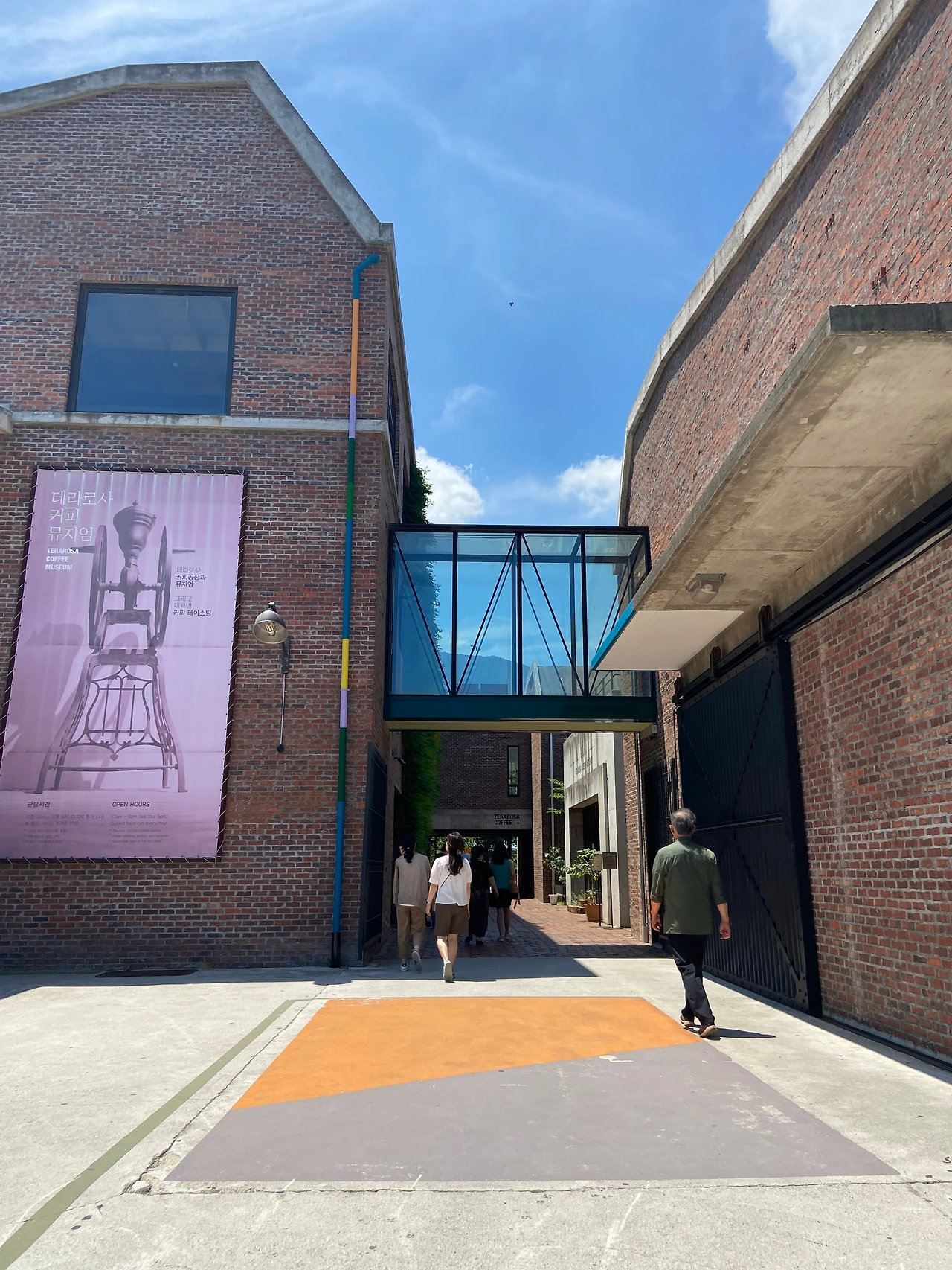테라로사 강릉본점의 외관. 쌓아올린 벽돌 못지 않게 바닥에 헤링본 스타일로 깔아놓은 벽돌도 아름답다.