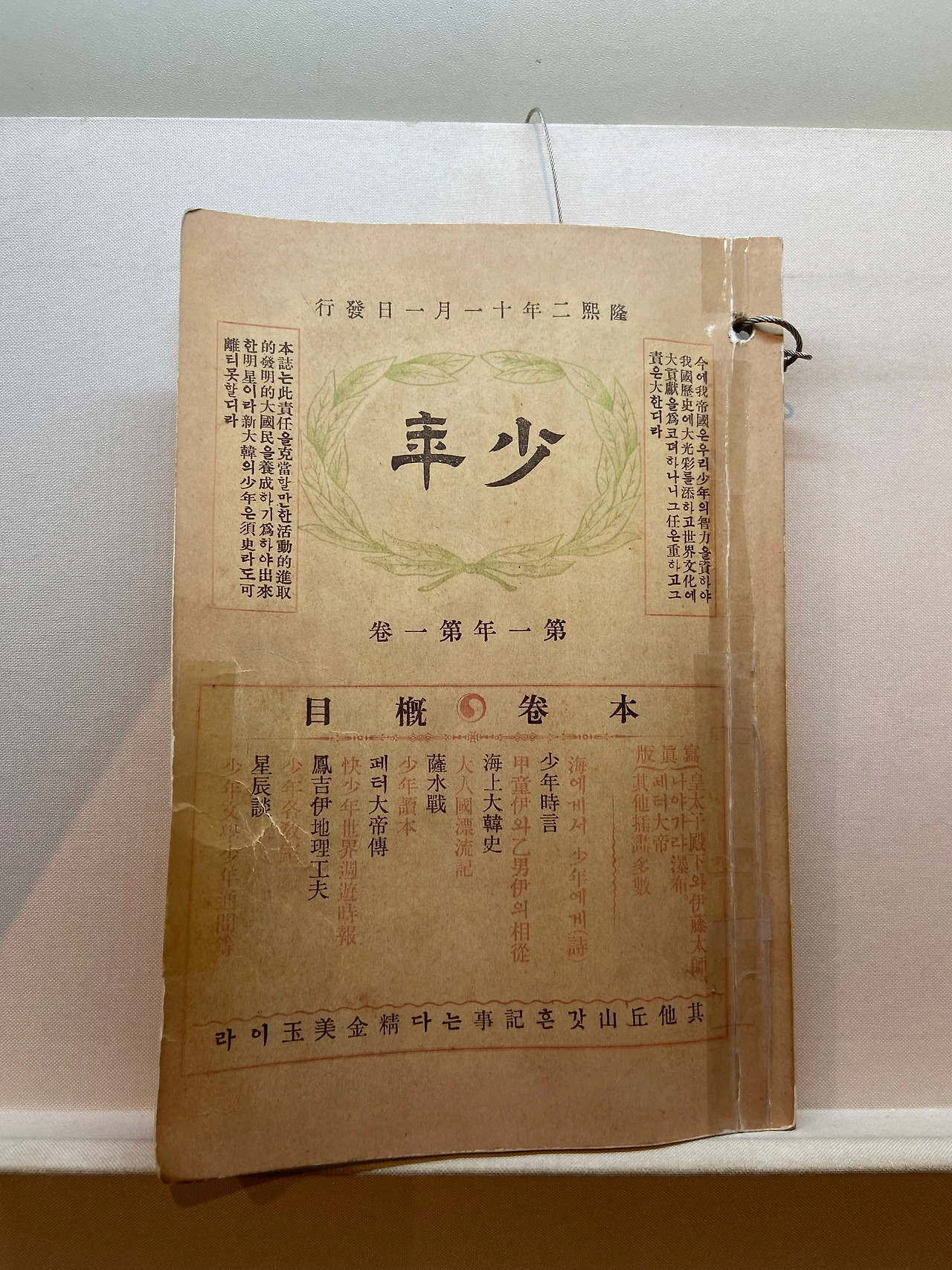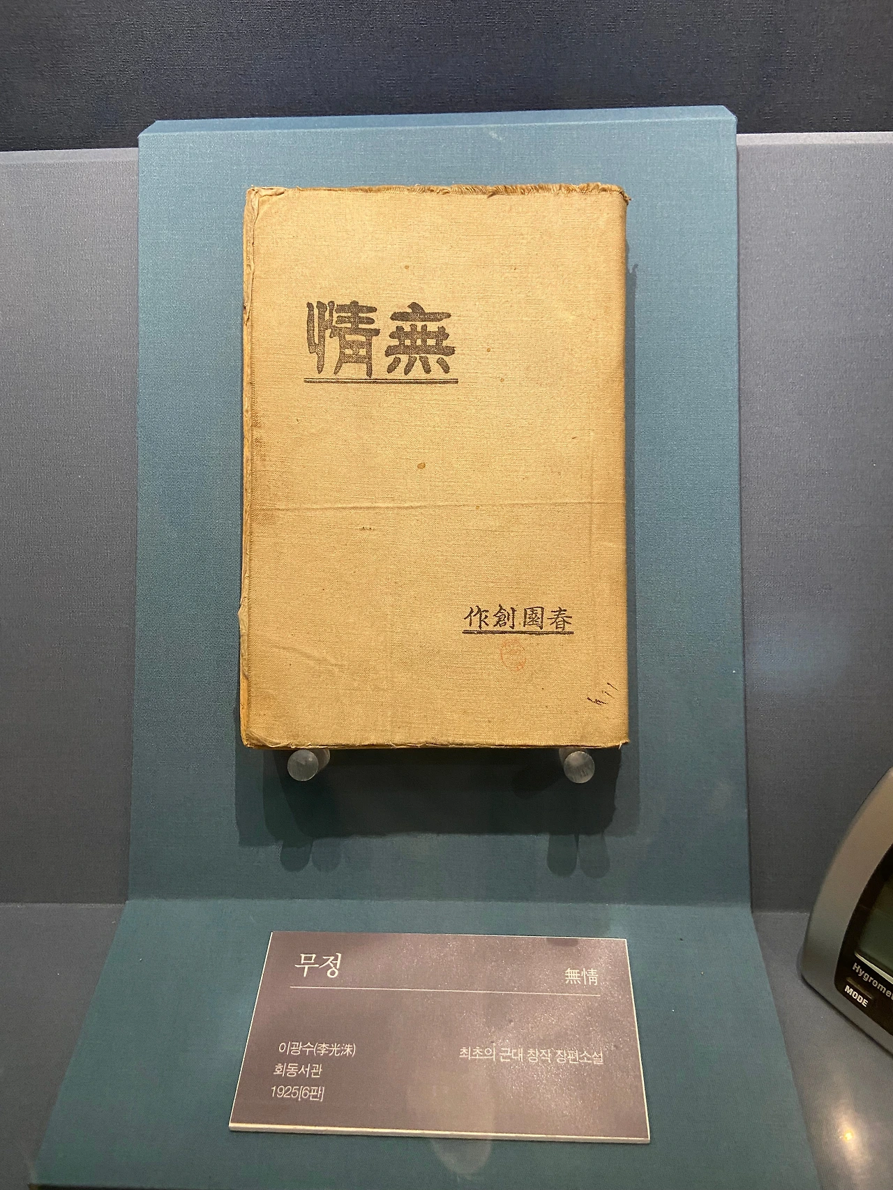 다음으로 우리가 찾은 곳은 한국근대문학관이었다. 근대문학관은 1894년부터 1948년까지 우리나라 근대문학의 형성과 역사적 흐름을 잡지 형식으로 구성하여 전시하고 있다. 신체시를 대표하는 최남선의 <해에게서 소년에게>, 신소설을 대표하는 이인직의 <혈의 누>로 시작하여 "김중배의 다이아몬드가 그렇게도 좋더냐"는 대사로 유명한 <이수일과 심순애> 대본까지 그 시기 작품들의 원본과 사본들이 흥미롭게 전시되어 있다. 특히, <혈의 누>는 팝업북 형태로 이야기 속 주요 장면을 전시하고 있어 아이들도 눈여겨볼 수 있을 것 같았다. 1894년 갑오개혁에서 1948년 대한민국 정부 수립에 이르는 시기는 우리 역사에서 매우 격동적인 시기였기에 문학계에도 커다란 변화들이 많았고, 여러 가지 시도가 압축적으로 일어난 시기였다. 잠깐 둘러본 전시관에서 얼마나 많은 것을 배울 수는 없겠지만, 적어도 한층 고양된 호기심을 가지고 그곳을 나설 수는 있었다.