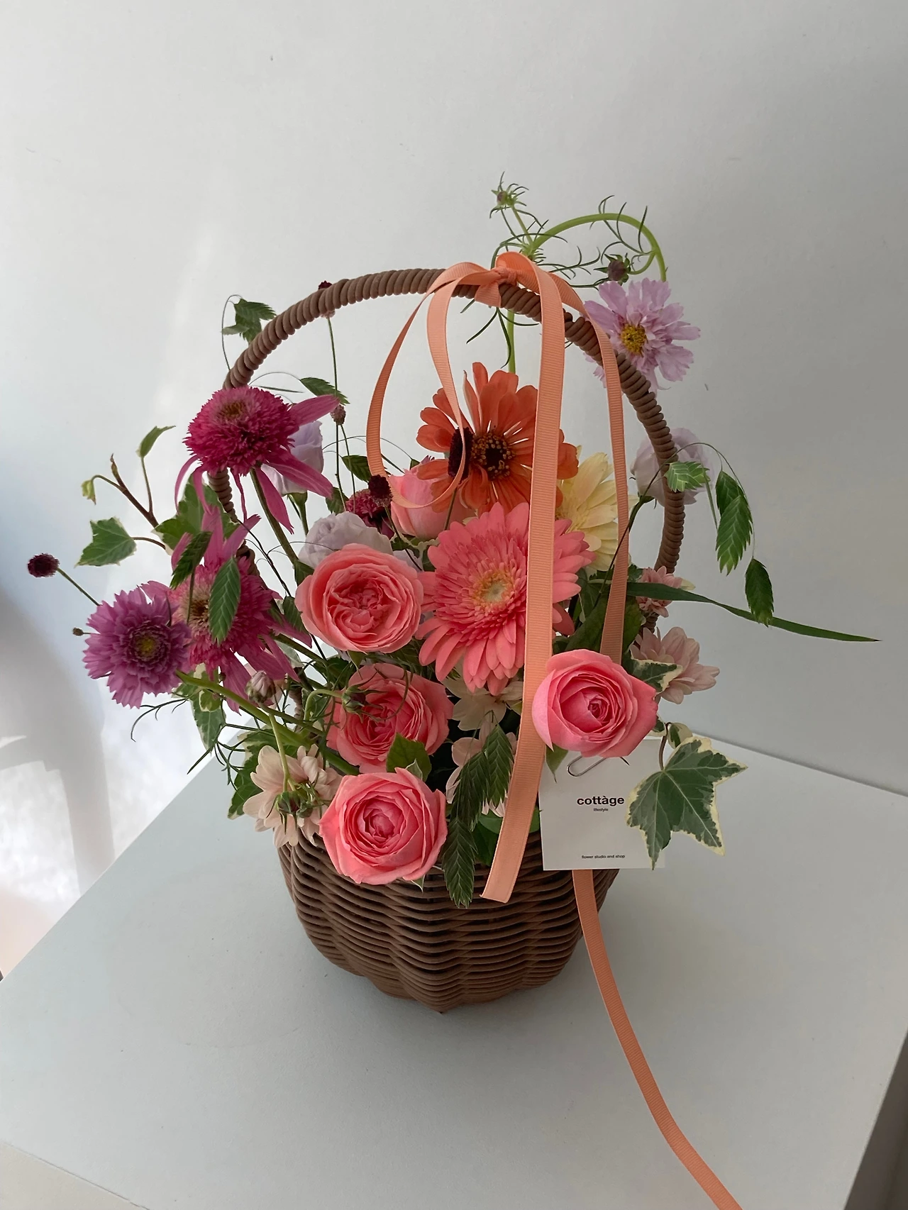 주말이 지난 후 친구에게 꽃바구니를 하나 보냈다. 인천으로 가는 날 들고 가려다가 망가뜨리지 않고 가져갈 자신이 없어서 미루어 두었었다. 전국의 모든 꽃집은 월수금 새벽에 새로운 꽃을 배송받는다. 주말에 꽃을 사는 것은 썩 현명한 일이 아니다. 월요일 아침 오픈 시간을 기다려 송도에서 가장 잘한다는 플로리스트에게 주문을 넣었다. 피치 파스텔 계열로 테이블 위에 올려놓기 좋은 사이즈를 골랐다. 무더위에 이 꽃이 며칠이나 갈지 모르지만, 우리의 우정은 오래가기를 소망하며. Cheers to our 30 years!