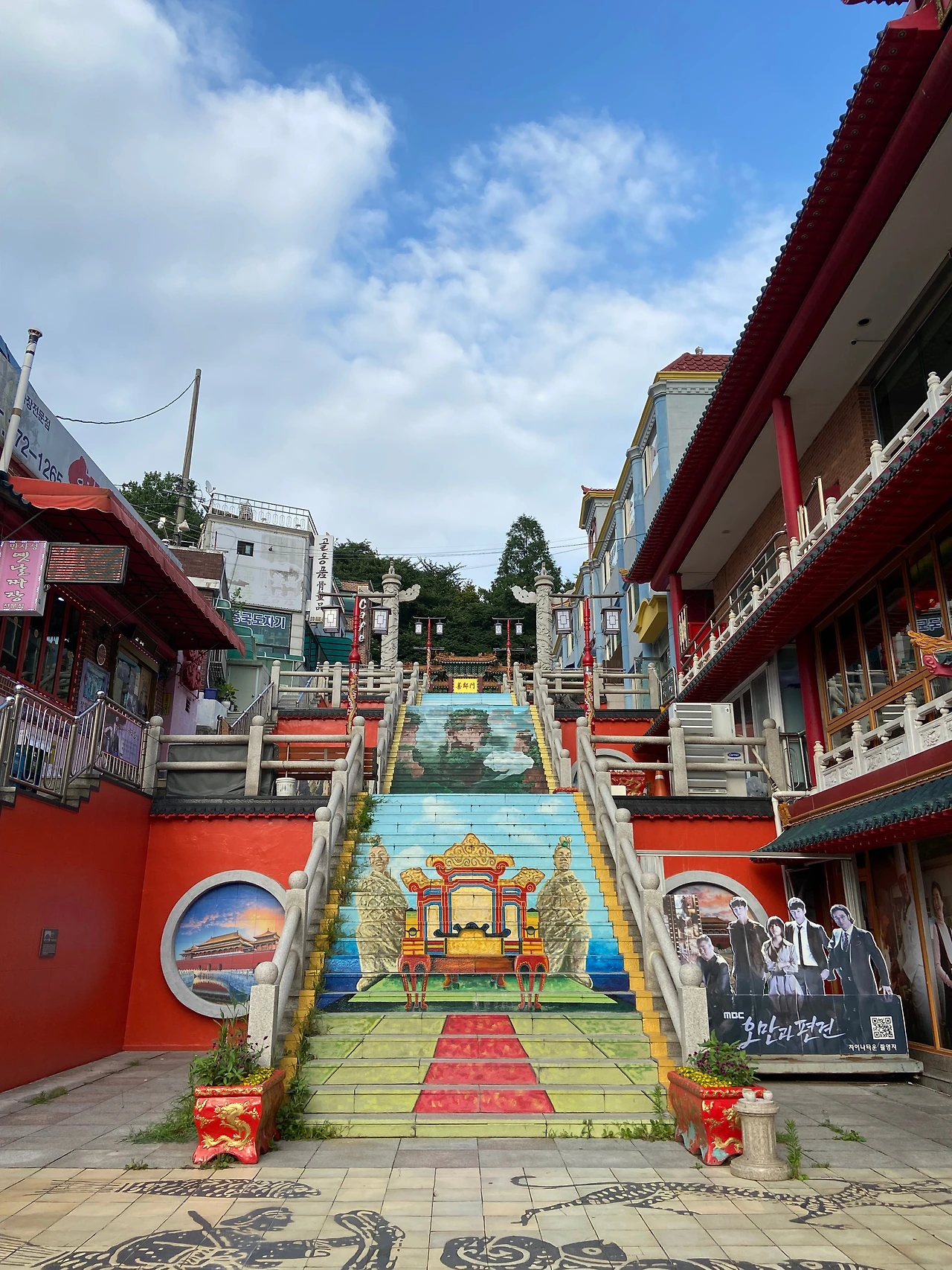 개항장 문화지구 바로 옆에는 대규모 차이나타운이 있다. 온통 붉은색과 금색으로 칠해진 가게의 간판들과 곳곳에 서 있는 거대한 문들이 중국적인 분위기를 자아내고 있었다. 1883년 인천항이 개항하면서 청의 치외법권 지대로 형성되었다고 하는데, 끝까지 가보니 바로 길 건너에 인천역이 있다. 항구와 기차역을 끼고 있는 최고의 입지였던 것이다. 코로나 19 여파인지 방문객은 많지 않았고, 가게들 중에는 문을 열지 않은 곳도 꽤 있었다. 시간이 늦어 짜장면 박물관은 입장을 할 수 없었다. 평평하기 그지없는 송도와는 달리 이곳에는 가파른 오르막과 내리막이 상당히 많아서 걸어 다니는 것만으로도 운동이 되었다. 특히 <황제의 계단>은 꼭대기에 선린문까지 세 개의 층계참이 있을 정도로 계단이 많고 가팔랐다. 지금까지 한 번도 중국에 가본 적이 없는데, 작은 중국을 체험한 것 같았다. 가족과 함께 나눠 먹을 선물로 친구가 공갈빵을 사 주었다. 대학 시절 학교 근처 지하철역 입구에 공갈빵 장수가 있었는데, 당시에는 중국 호떡이라고도 불렀던 것 같다. 공처럼 부풀어 오른 딱딱한 빵에 속이 비어있는 것이 재미도 있고 맛도 좋아 많이 먹었던 기억이 난다.