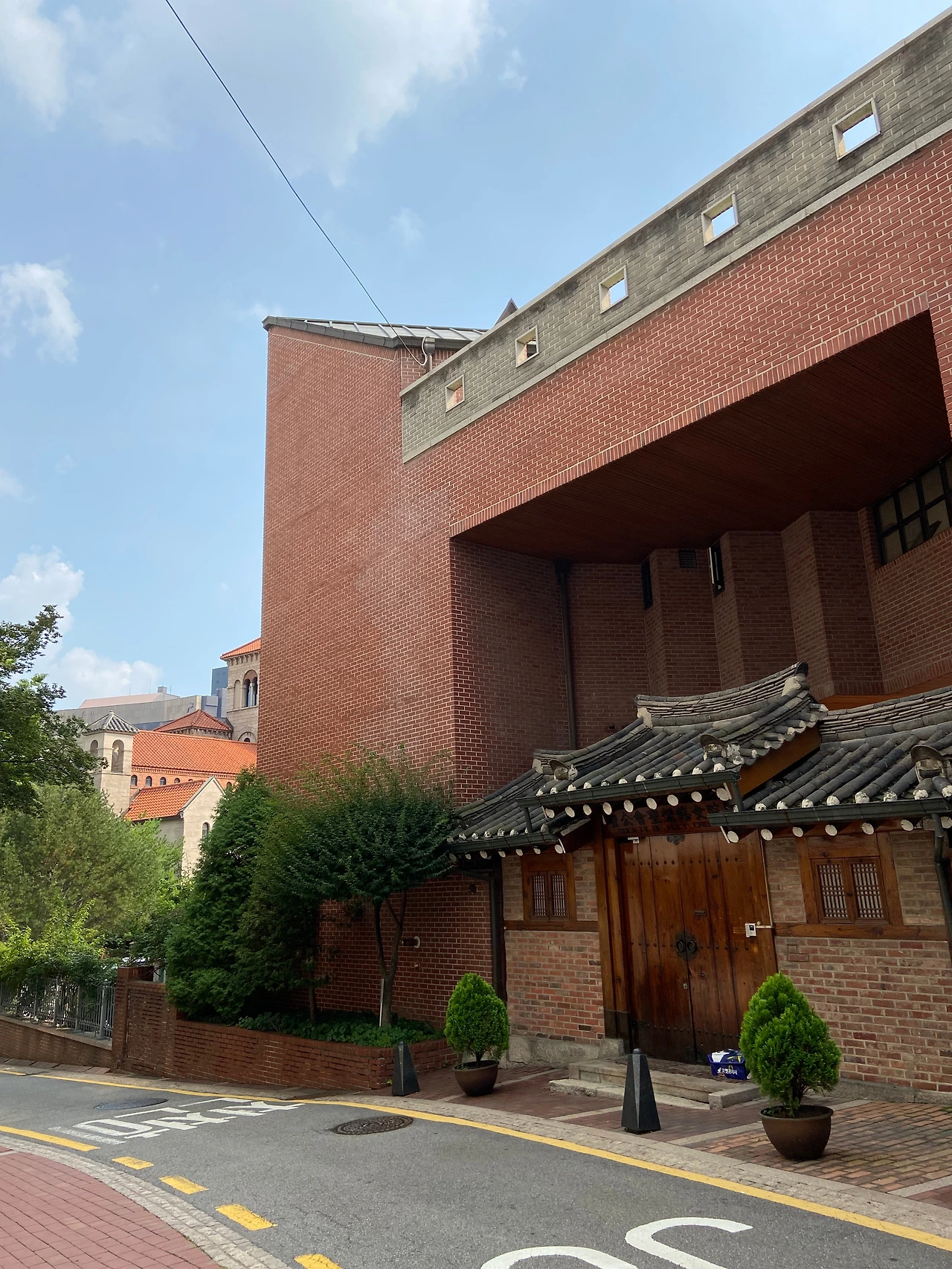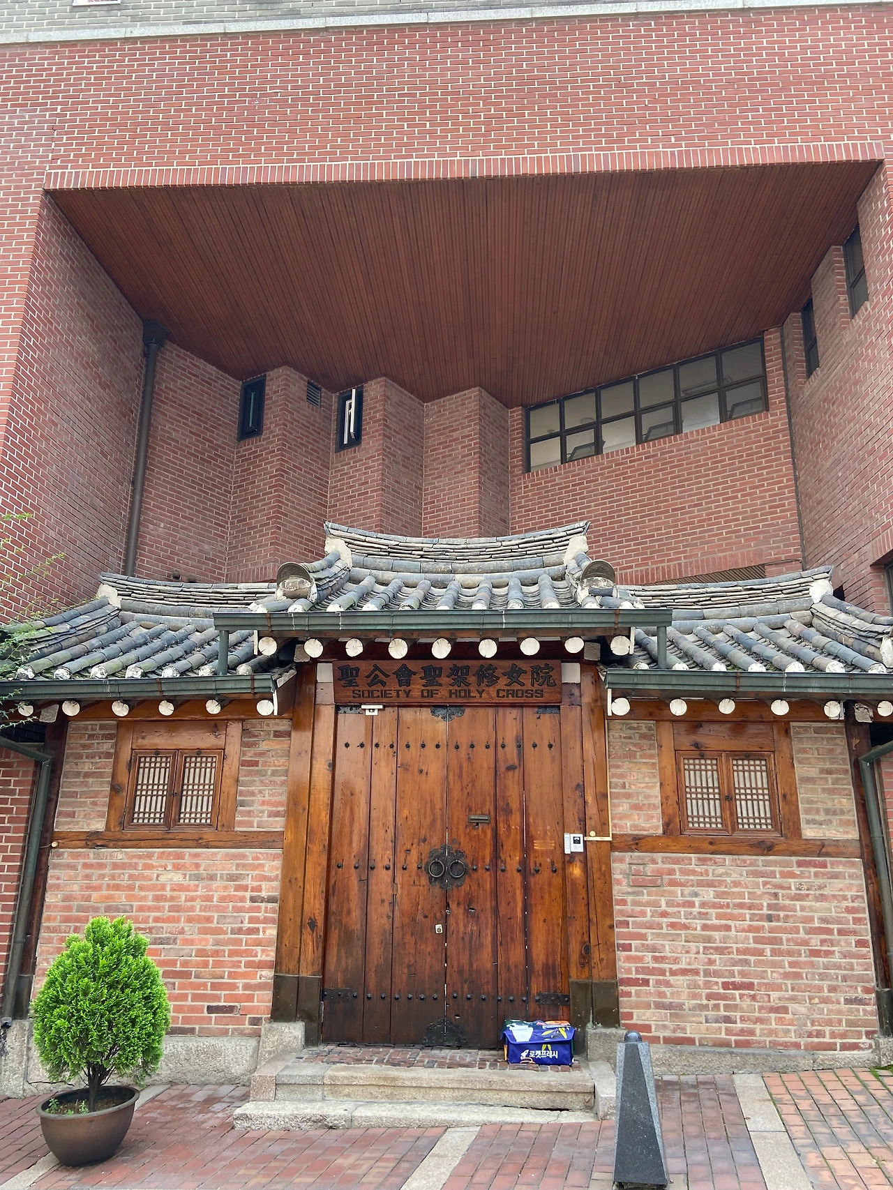 전시의 규모가 아담해서 둘러보는데 오래 걸리지 않았어요. 그래서 전시관 뒤쪽에는 뭐가 있나 몇발짝 산책을 해 보았어요. 스페인 기와를 얹은 이국적인 석조건물이 눈에 띄었습니다. 대단히 크지는 않지만 나름 정원도 갖추고 있었어요. 알고 보니 대한성공회 대주교좌대성당이라는 곳이었습니다. 종교시설이라 조심스러워서 들어가지는 않았는데요, 서울시내 한복판에 이런 곳이 있는 줄 이제야 알았다니 반성이 되기도 했어요. 바로 길 건너에 있는 건물에 수십번을 왔는데, 이렇게 둘러볼 생각을 한번도 안 했네요. 성당 바로 옆에는 수녀원도 있었어요. 성당과는 달리 한국적인 색채가 짙은 건물이었어요. 높다란 출입문은 굳게 닫혀있는데, 그앞에 보라색의 쿠팡 보냉팩이 놓여있었어요. 수녀님들은 무엇을 주문해 드시나 호기심이 들었지만 불경스러운 짓인 거 같아 들여다 보지는 않았습니다.