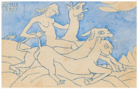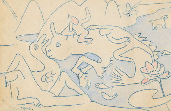 엽서화는 이중섭이 아내이자 문화학원 한 해 후배인 야마모토 마사코(한국명 남덕)에게 보낸 그림엽서들이다. 9x14cm 관제엽서의 한 면에는 그림을 그리고, 뒷면에는 자신의 주소를 남겼다. 펜이나 붓으로 사람과 동물, 식물을 쓱쓱 그렸는데 그 단순함 속에 순수함과 생명력이 넘치고, 사람과 삶에 대한 무한한 애정이 느껴진다. 내가 좋아하는 마티스와 비견할 만하다. 또 상상 속의 동물들도 많이 그렸는데, 그런 점에서는 샤갈의 그림을 연상시키기도 했다. 종이와 미술용품을 구하기 힘든 시절이었던 탓이겠지만 그림들이 모두 이렇게 작다는 것이 안타깝다.