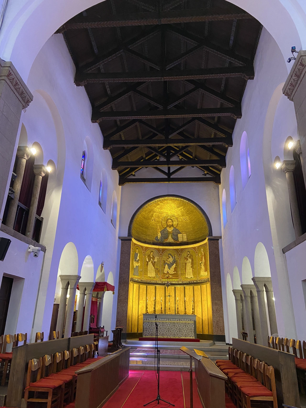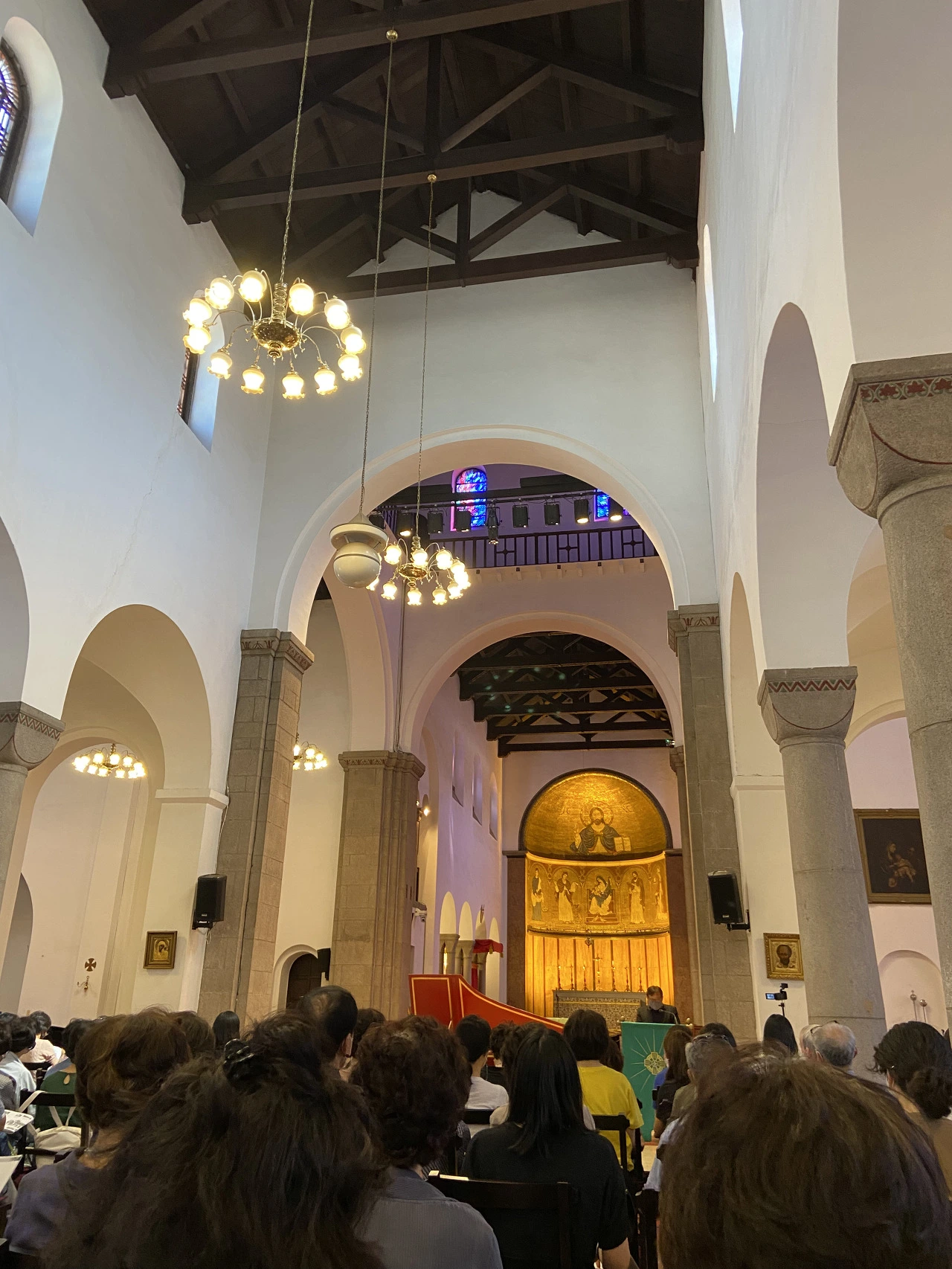연주회가 끝나고 성당 내부를 찬찬히 둘러보았다. 유럽 여행에서 보는 성당에 비해 크기도 아담하고, 스테인드글라스 역시 소박하기 그지없다. 하지만 반원형 제단에 예수와 성인들의 모자이크 그림은 금빛 찬란하다. 하얀 예배당 내부에는 열두 개의 돌기둥이 있는데 각각 예수의 열두 사제를 상징한다고 한다. 여느 성당처럼 벽에는 예수의 탄생에서 부활에 이르는 장면들을 그린 성화들이 시간의 순서로 걸려있다. 영국의 국교회인 성공회는 "Holy Catholic Church"를 한자문화권에서 "성스럽고(거룩하고) 공번된(보편적인) 교회"라고 번역하면서 붙여진 이름이다. 많은 나라들에서 Episcopal Church 또는 Anglican Church라고 부른다.