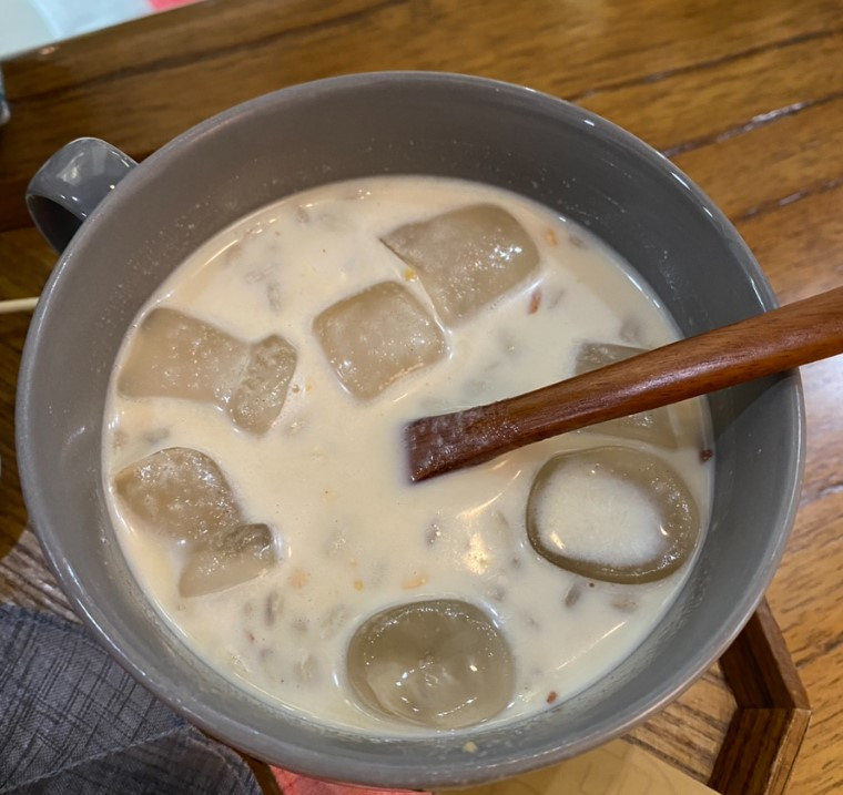 우유에 탄 미숫가루에 얼음 동동 띄워 마시며 더워진 몸과 마음을 식혀본다.