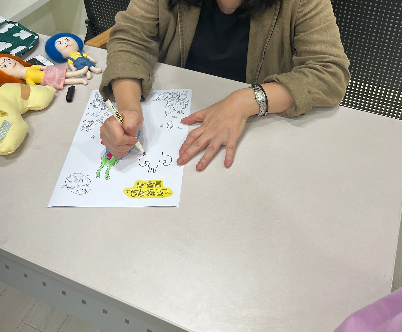 아이들의 그림 활동지에 사인을 해주시는데 역시 그림책 작가님 답게 그림으로 사인을 해주신다.